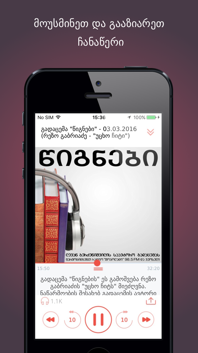 * You can listen the radio or a record after closing application and even when the iPhone screen is locked;