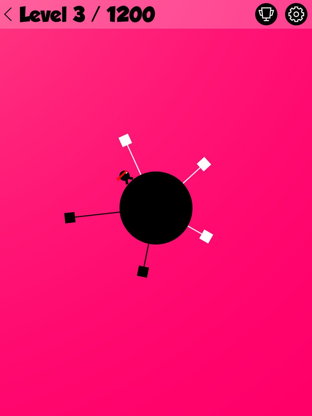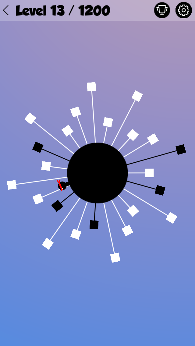 点击或按住屏幕使角色跳跃,不要触到黑色方块,消灭所有白色方块,有1200个关卡,超级耐玩