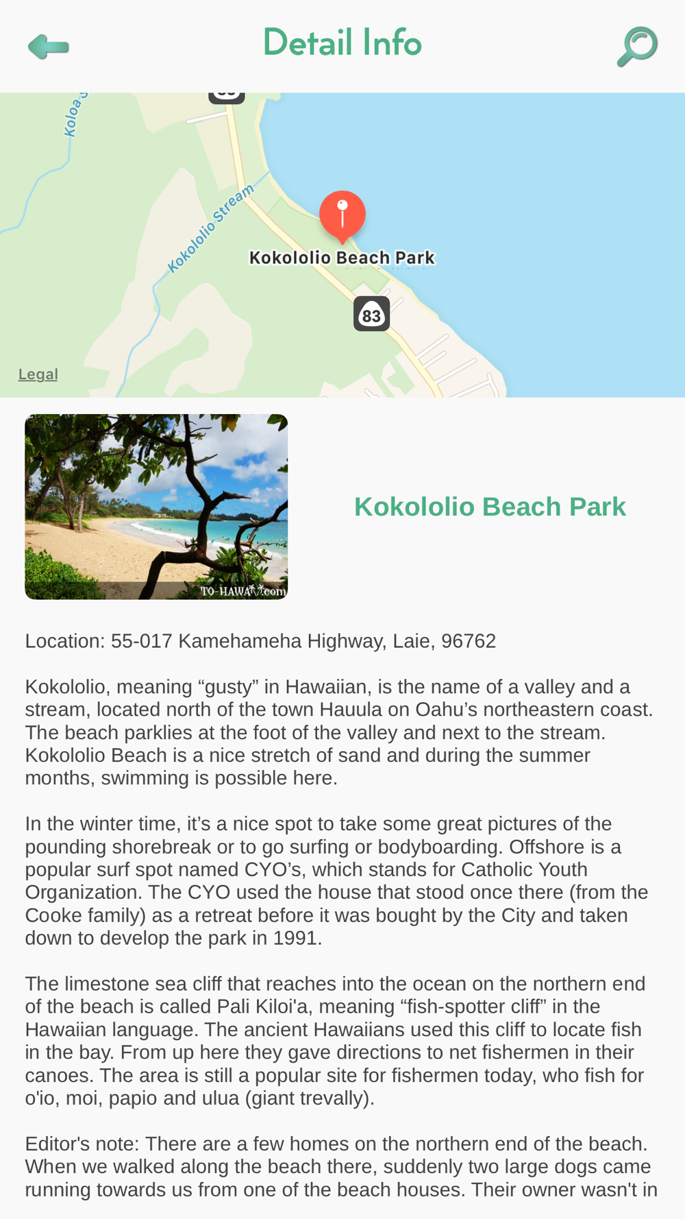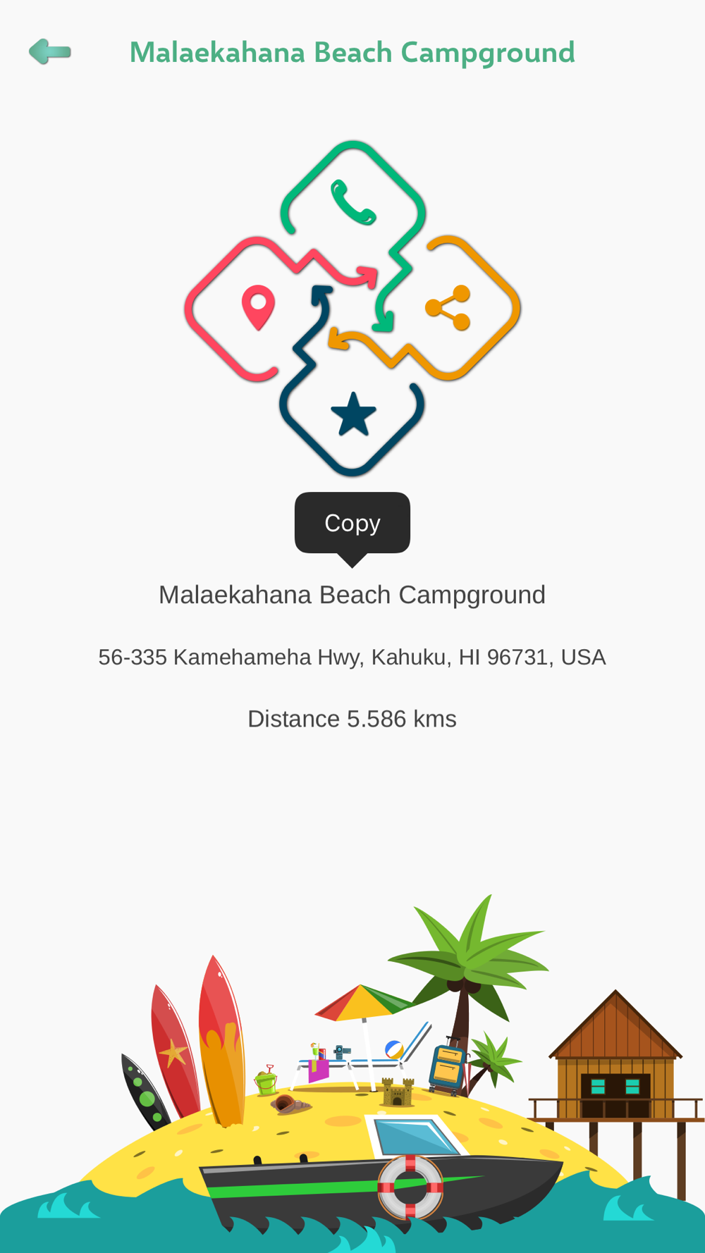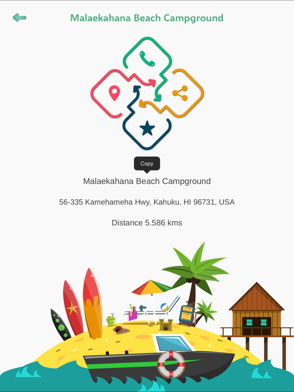 • Campground info • Amenities • Address • Map • Directions • POI Search • Images • Visitor info