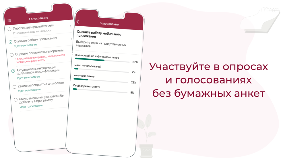 • Обеспечивает участников удобным инструментом для активной работы на мероприятии