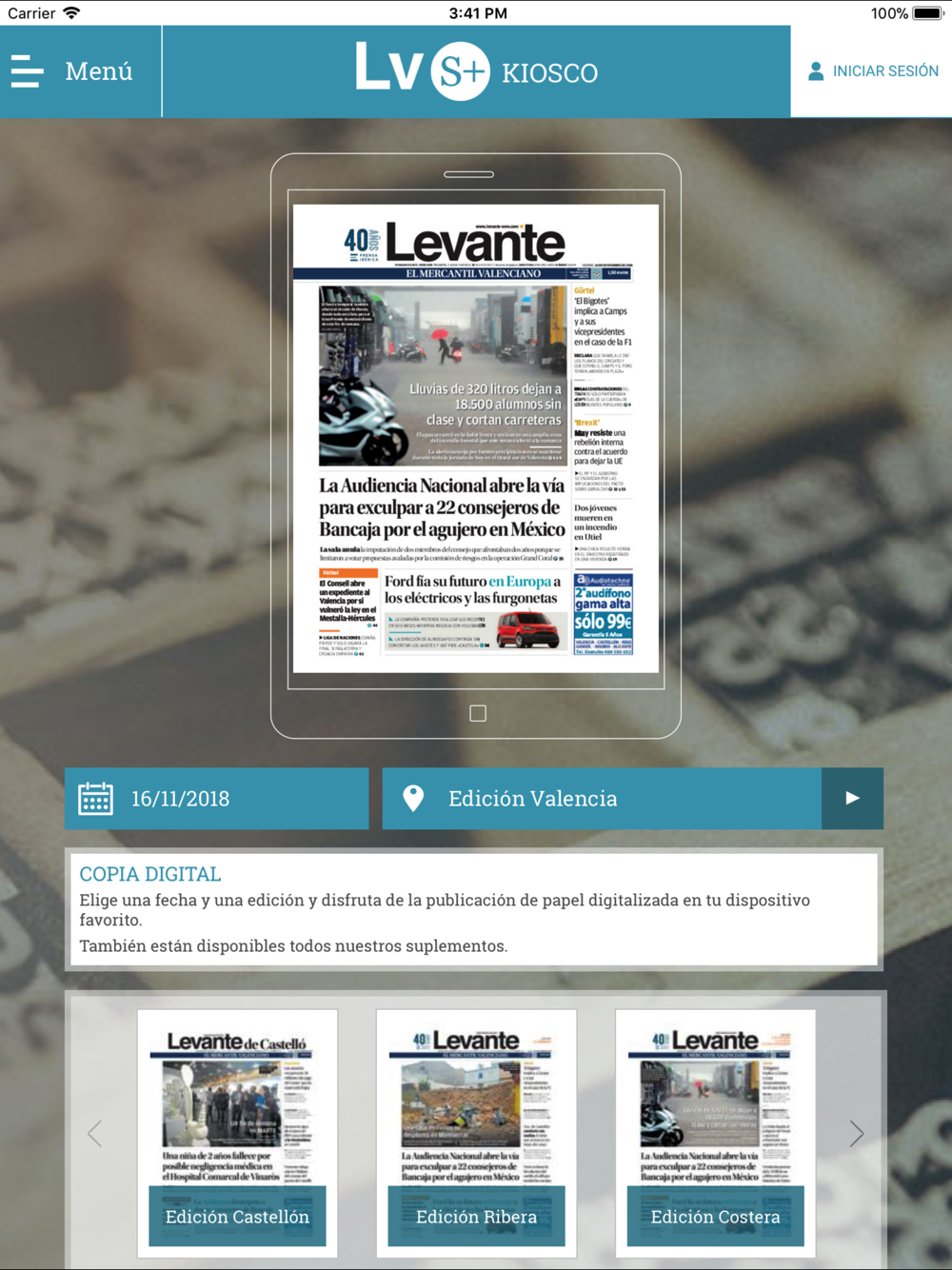 Acceso a la edición digital del Levante - El Mercantil Valenciano. Publicación diaria de la versión digital de las ediciones impresas. Incorporación de elementos multimedia y acceso a últimas noticas por RSS.