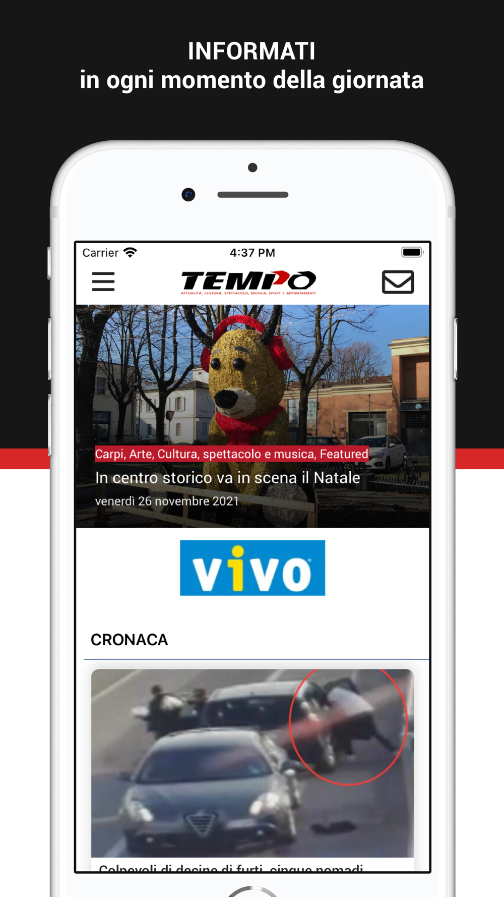 NEWS – Questa sezione è pensata per chi cerca un'informazione completa e approfondita: è l'intero sito di Tempo all'interno della App con le notizie aggiornate in tempo reale, gli approfondimenti, le opinioni.