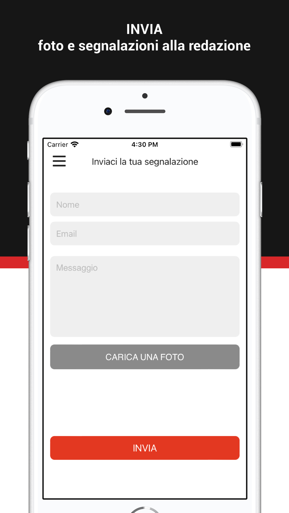 INVIACI LA TUA SEGNALAZIONE – A portata di mano sullo smartphone questa sezione consente di inviare foto e segnalazioni.