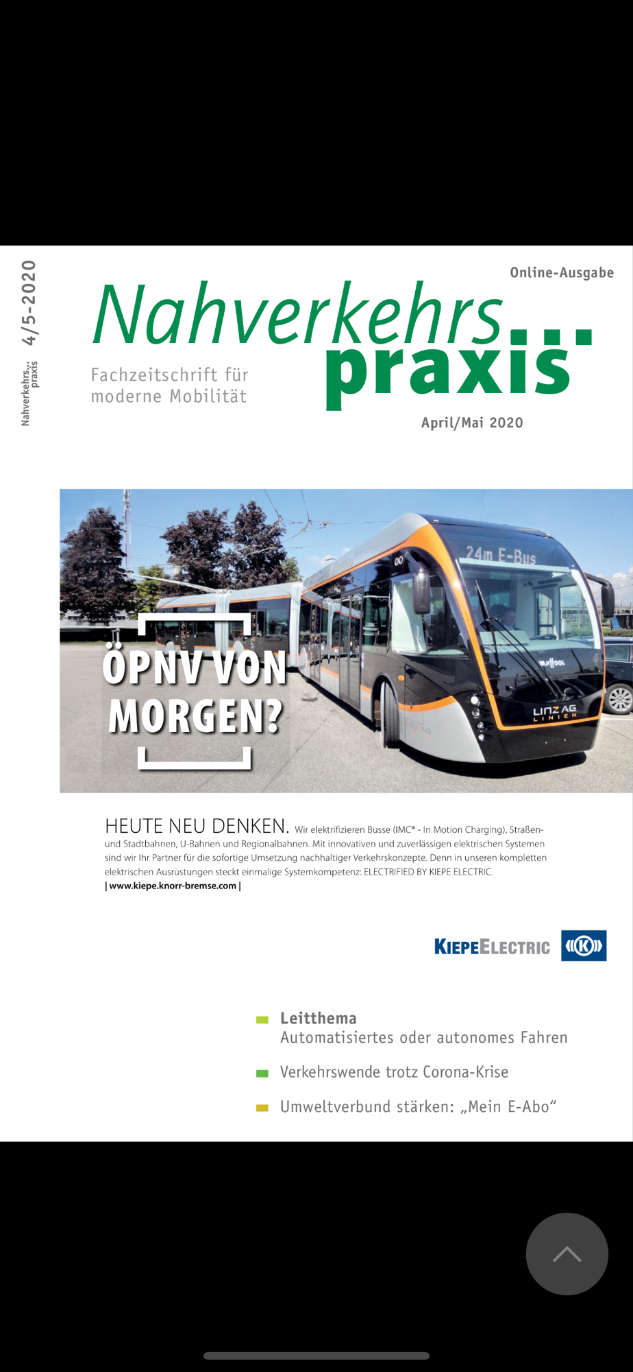 Die Nahverkehrs-praxis ist eine im In- und Ausland bekannte Verkehrszeitschrift für den öffentlichen Personen-Nah- und Regionalverkehr und die Verkehrsindustrie mit einem akzentuierten Leitthema in jeder Ausgabe. Sie berichtet praxisbezogen über technische Neuerungen und aktuelle Entwicklungen in den Verkehrsunternehmen und -verbünden sowie der Verkehrsindustrie. Experten informieren über verkehrspolitische Themen, rechtliche Neuerungen und berichten von den relevanten Branchenveranstaltungen. Dabei deckt die Nahverkehrs-praxis das gesamte Spektrum von Schienen- und Straßenverkehr innerhalb des ÖPVs ab. Ausführliche Beiträge mit vielen Hintergrundinformationen und spannende Interviews informieren über das aktuelle Geschehen in der Welt des öffentlichen Personenverkehrs. Die Zeitschrift erscheint sieben Mal pro Jahr; Bildergalerien, Videos und weiterführende Verlinkungen ergänzen die App-Ausgabe.