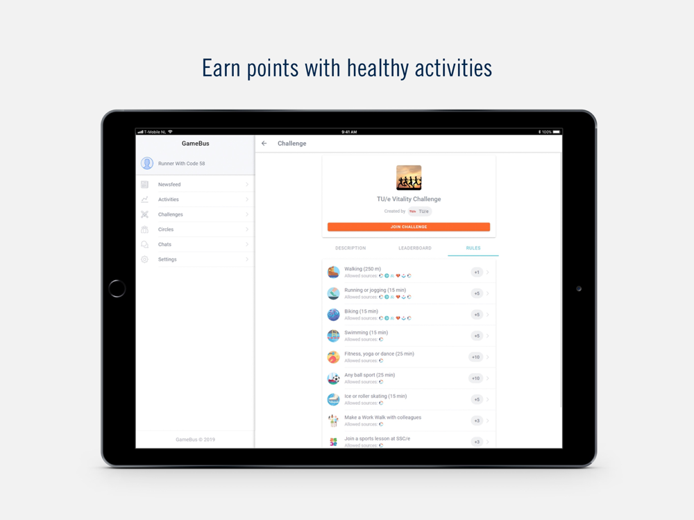 Game players stimulate each other in order to achieve team goals, which favors their health directly. Implicitly, the game sessions will also counter social isolation and unconsciously vulnerable elderly will be monitored against cognitive decline too. Furthermore, GameBus generates rich, integrated data sets (related to cognitive, physical, and social activities) with big commercial and scientific potential. GameBus is intellectual property of Eindhoven University of Technology (TUE) and brought to the market by http://synergetics.nl, aiming at fair and ethical value exchange of all personal data.