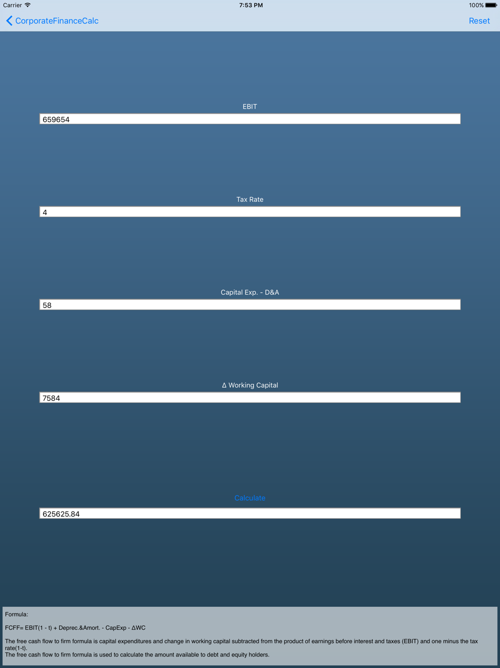 CorporateFinanceCalc provides an easy and stress free way of calculating a selection of 25 most important ratios (listed below) used in financial and investment analysis.