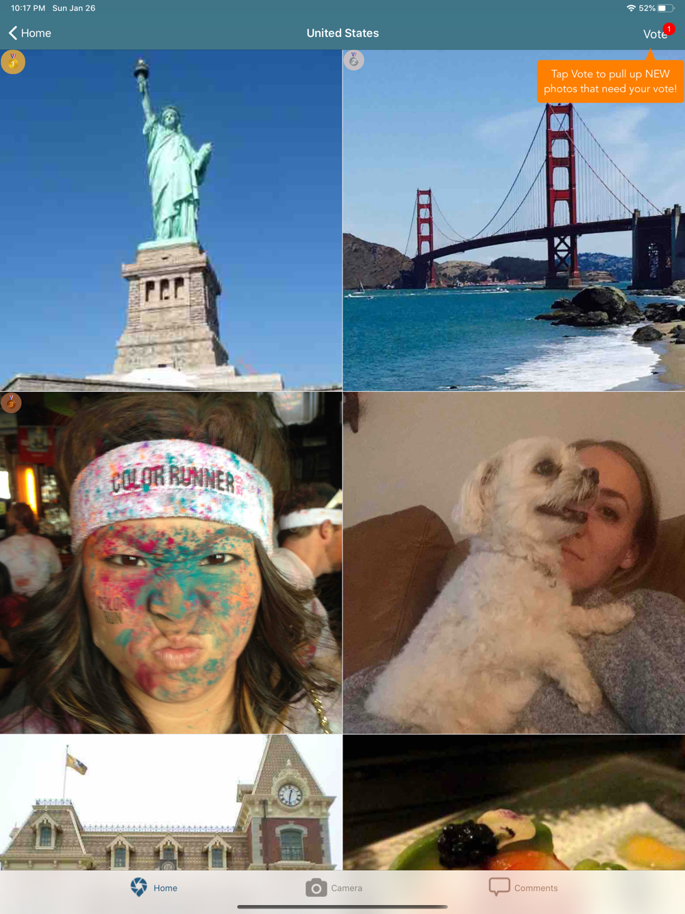 Posts are arranged by region (e.g. neighborhood, city, state, country etc.) and you have access to view photos posted from the region you're currently in. Posting and voting unlocks worldwide access as you become a Diogo Champion!