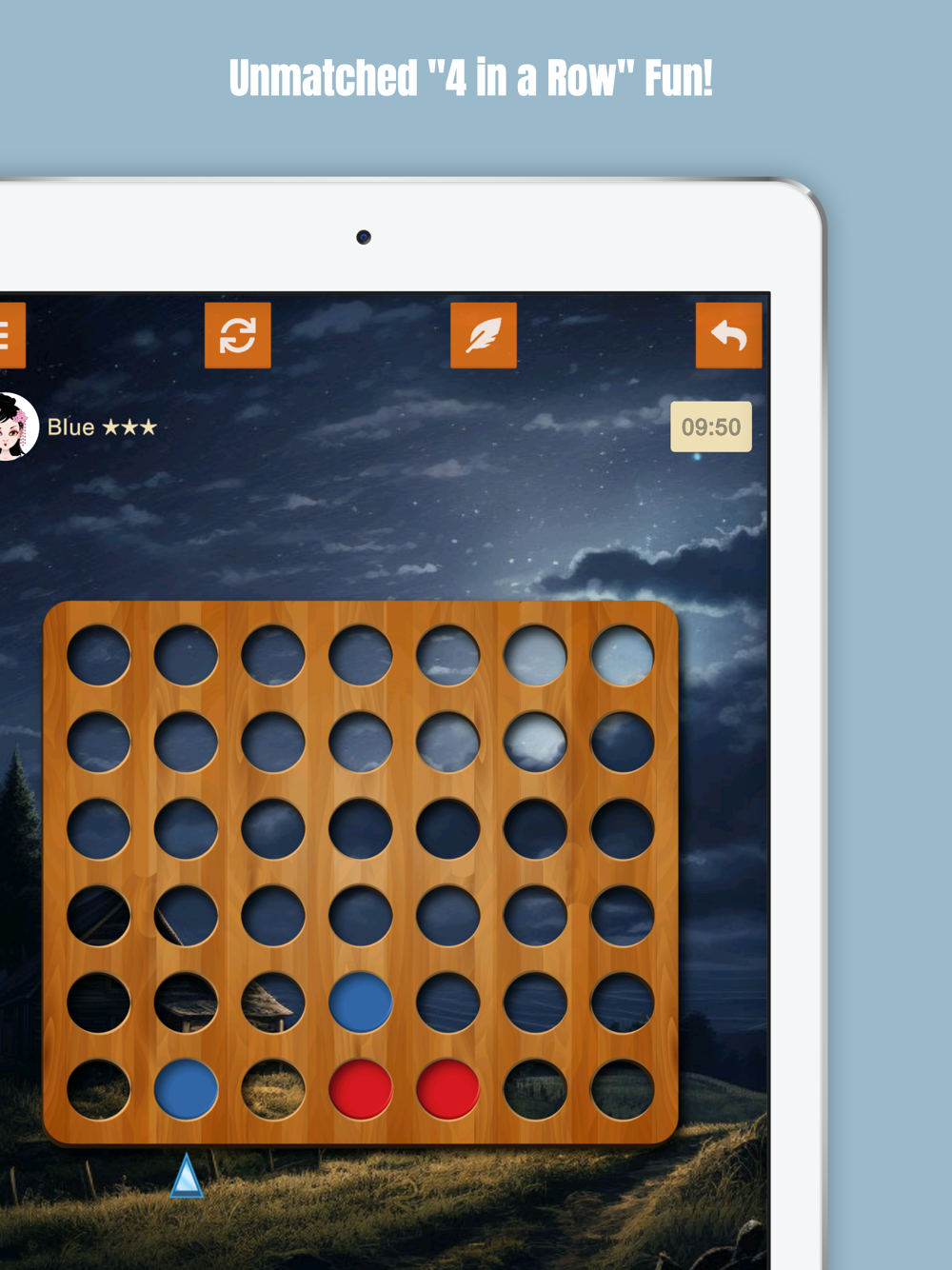 Dive into the captivating world of "4 in a Row", your new go-to game for endless fun and challenging gameplay! Engage in thrilling one-on-one battles, strategically dropping colored discs into a dynamic grid and aiming for that exhilarating moment when you align four pieces and emerge victorious!