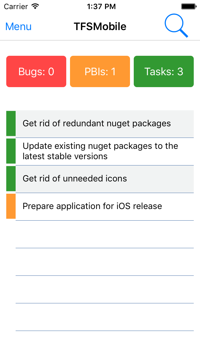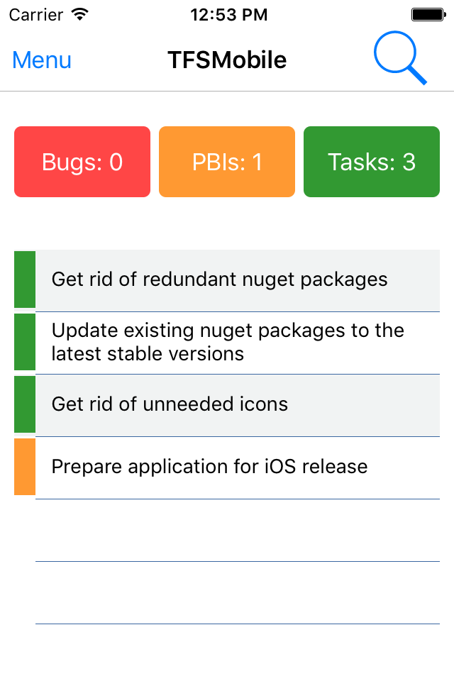 Quickly check current work, find work items, queue a new build - all this from you mobile phone!