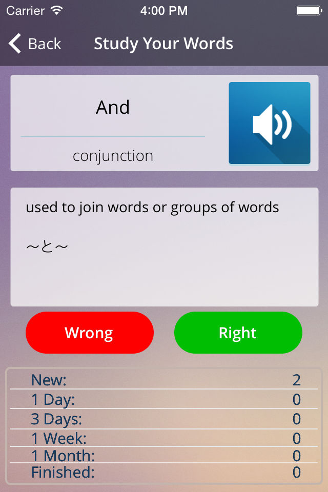 Based on the well documented science of “spaced-repetition”, the Intelligent Flashcard system systematically and efficiently helps you to review the words several times over a period of a month, giving you extra time with the words that are giving you difficulty.