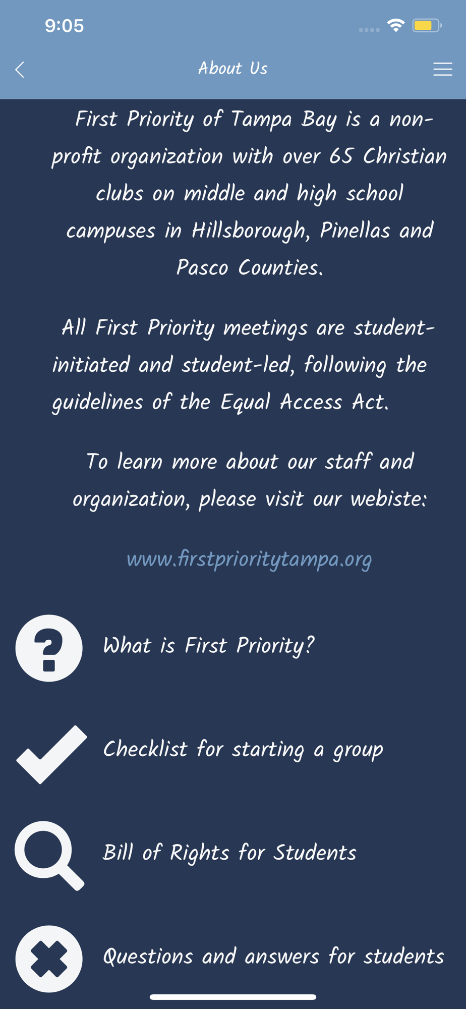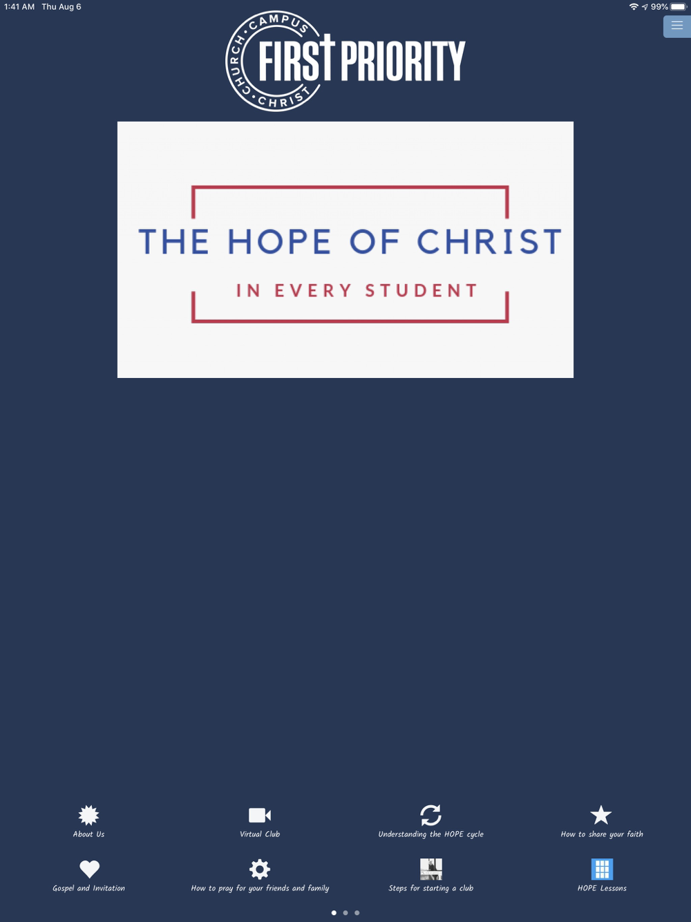 First Priority serves students in middle and high school; youth pastors To provide resources for First Priority clubs HOPE cycle lessons.