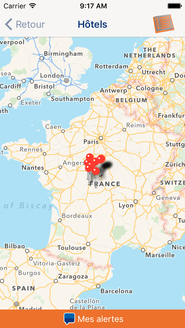 - la carte des pharmacies, hôpitaux, gares, aéroports, parkings, hôtels, restaurants autour de vous