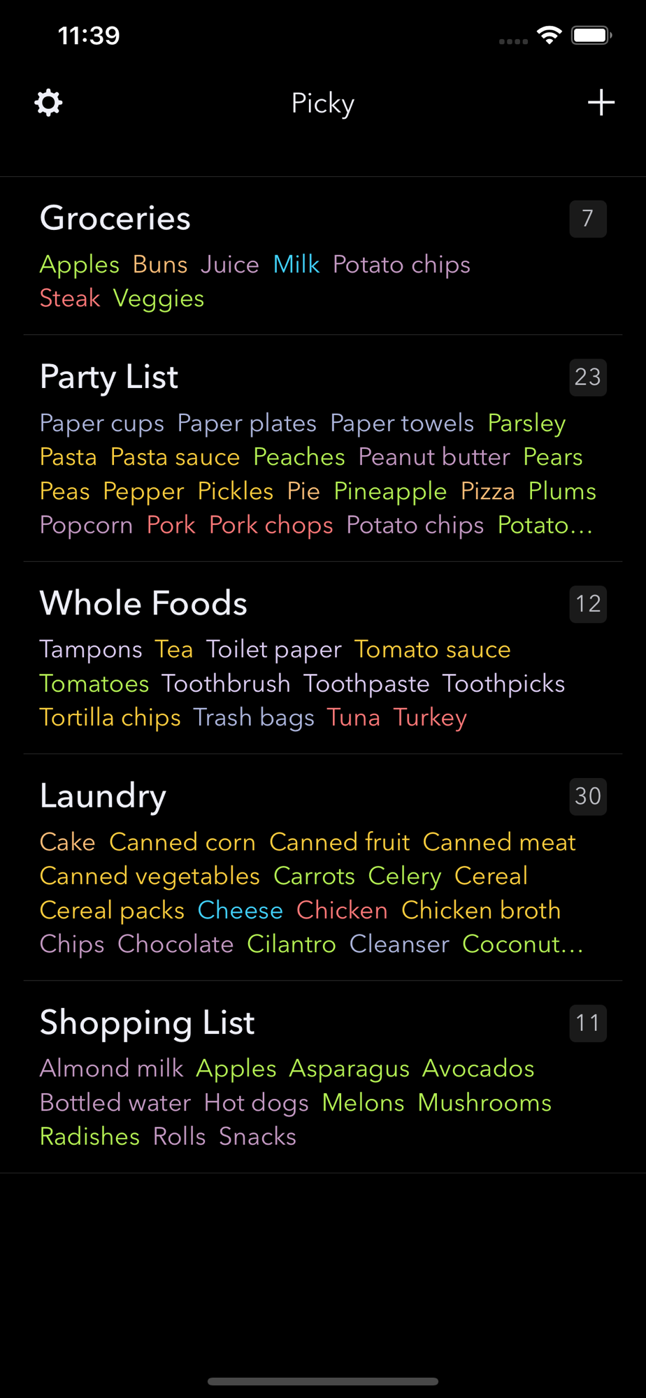 Picky is simple and beautiful shopping list app. It is designed to help you focus on shopping while minimizing the clutter and confusion of managing your lists.