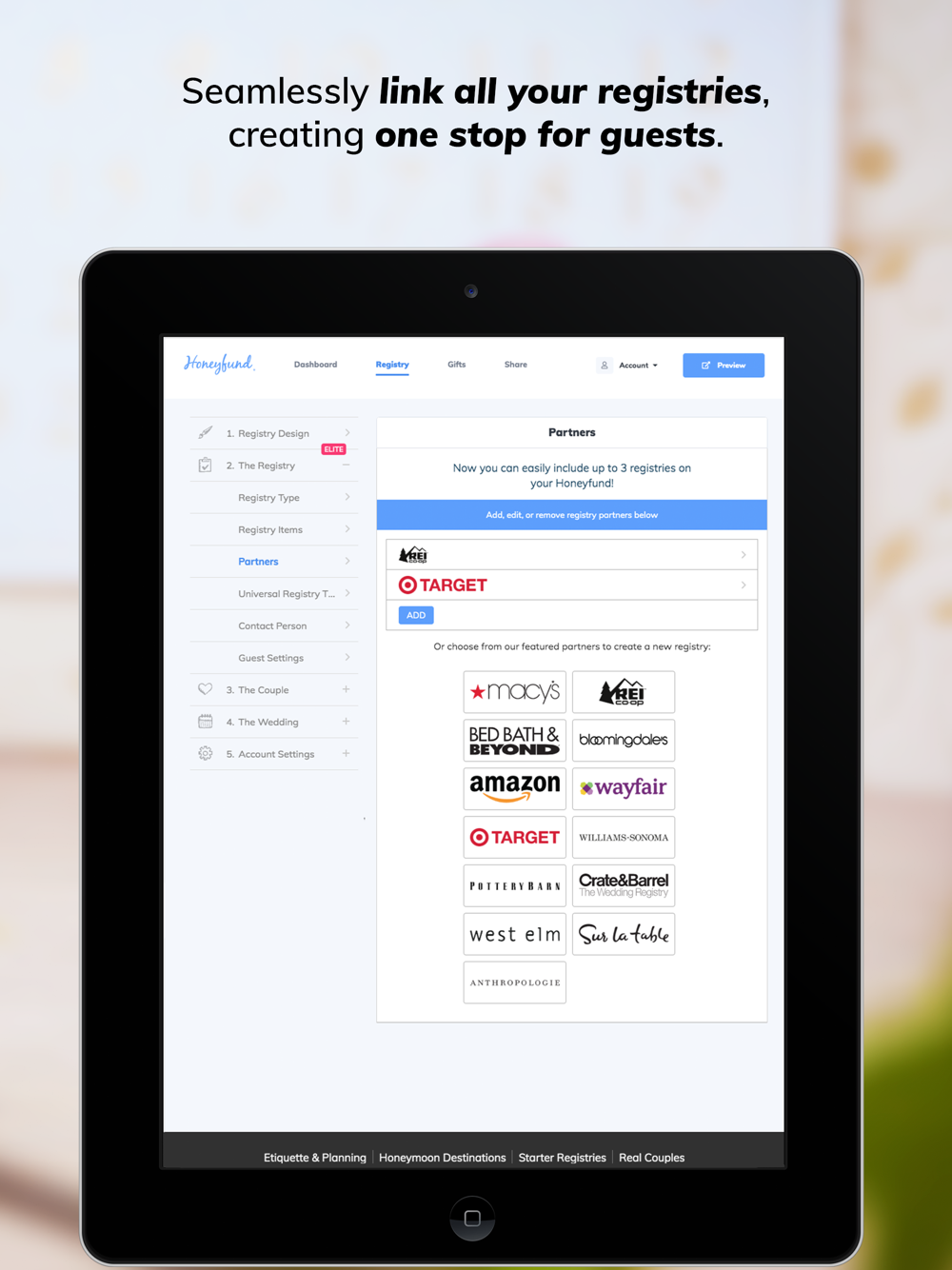 * Create a gorgeous honeymoon registry to make your honeymoon happen