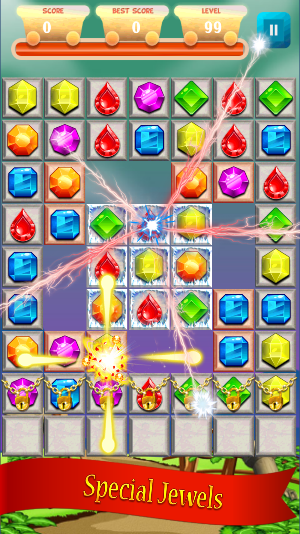 - Match 4 jewels to create special lightning jewels blast bomb. Jewels blast bomb can destroy all jewels around it.