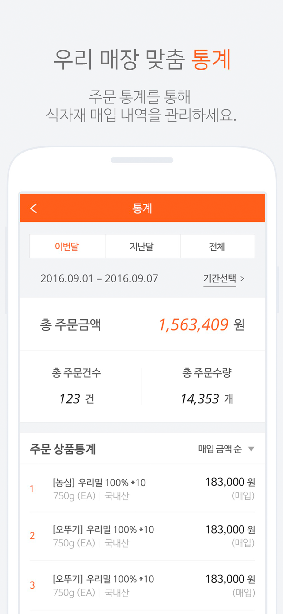 - 바쁜 점주님들을 위해 평소에 자주 주문하는 상품은 맨 위에 배치해놨어요.