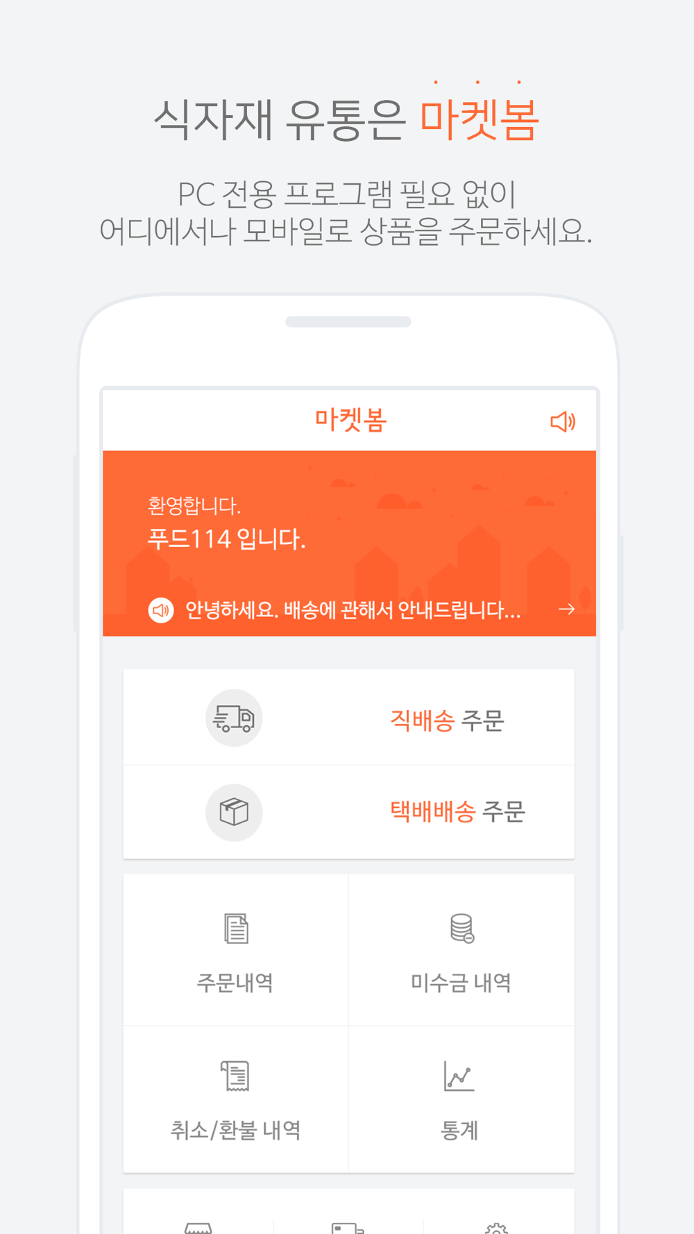 편리하고 빠른 식자재 발주 앱, 마켓봄