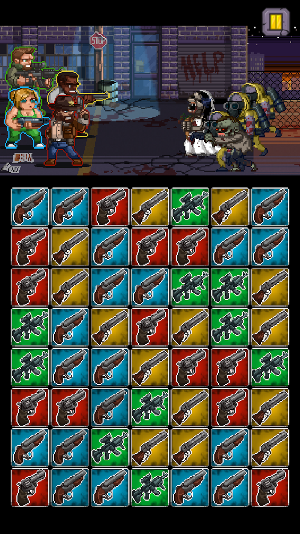 The retro pixelated graphics and artwork are extremely enjoyable. The popping sound of matching at least 3 zombie weapons is sweetly enjoyable. Match 3 or more to pass through the 3 difficulty modes. Do you have the matching puzzle skills to pass all levels and reach the ultimate high score?