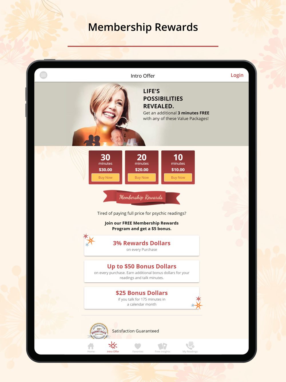 In addition to notifications, the app makes it quick and easy for you to manage your availability to receive return calls, appointment reminders, find special offers and promotions, and manage and view your favorite advisors’ current availability for phone, chat and video readings. It also makes it easier than ever to join membership rewards right from the app and if you are already a member, you can check your progress.