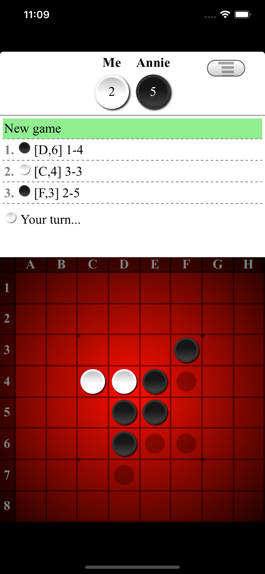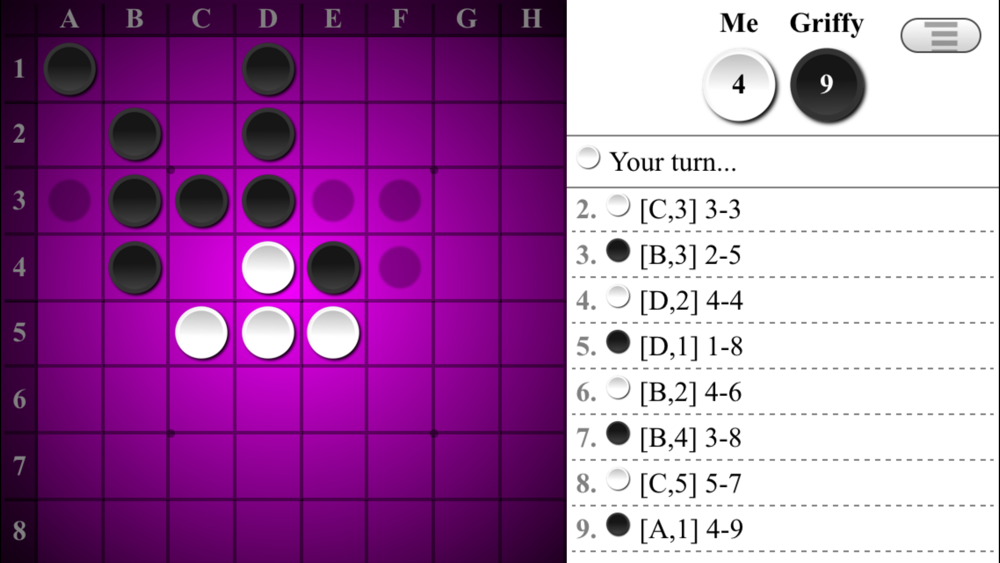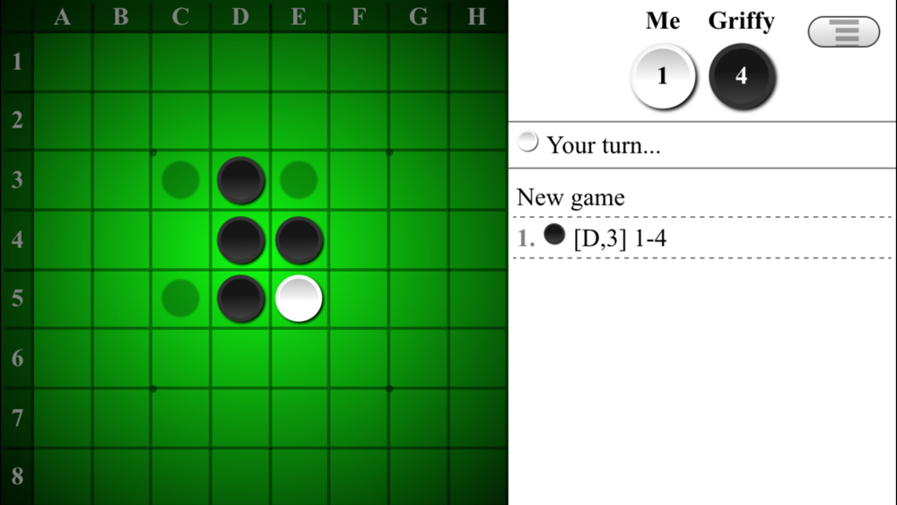 Pieces are flipped when they become sandwiched between the opposing players' pieces. The player who has the highest score when neither player can move is the winner!