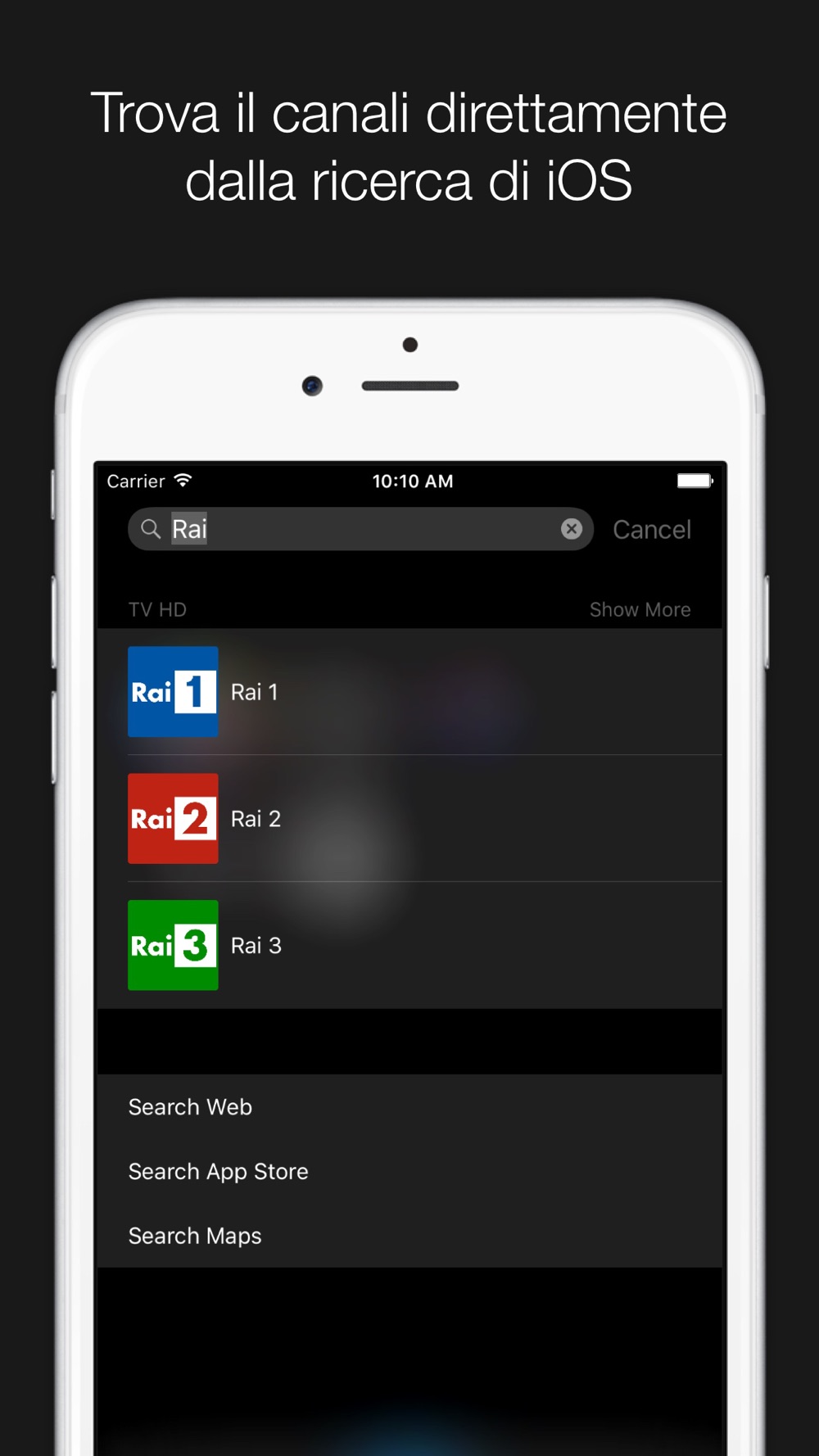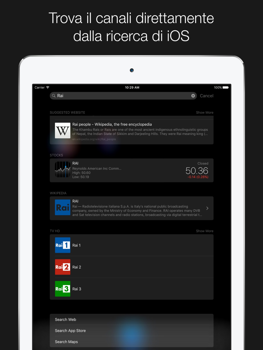 • Ricerca dei canali direttamente da Spotlight di sistema