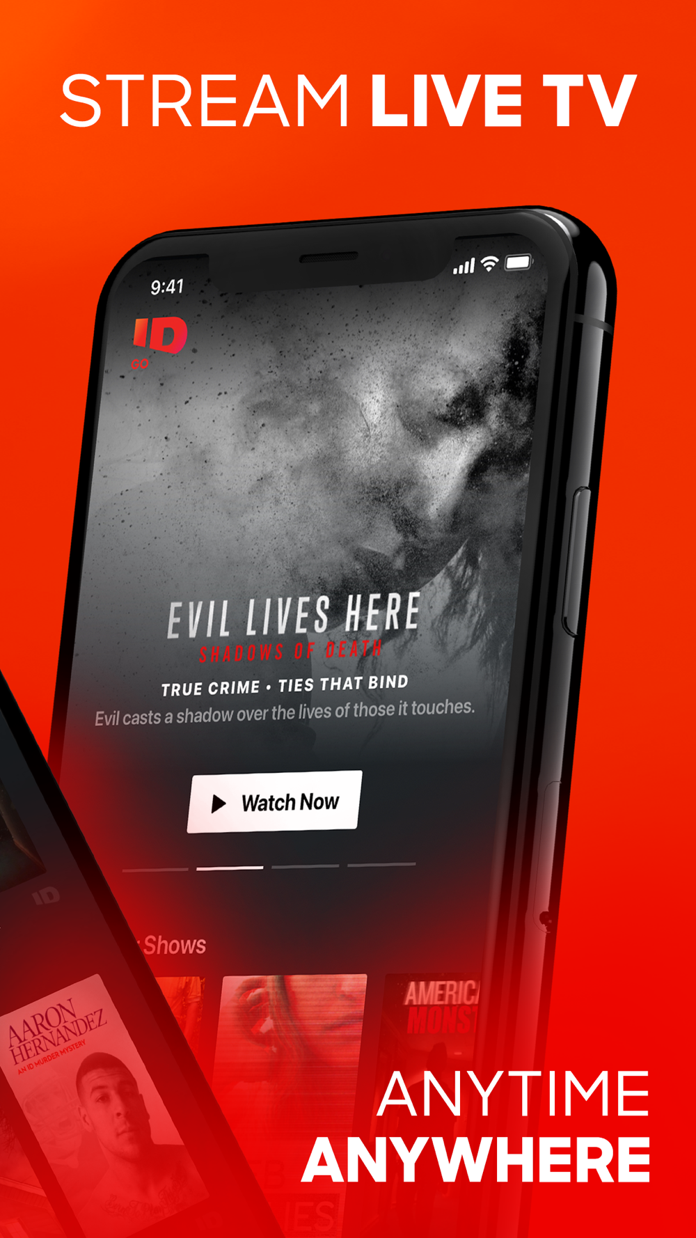 Link your pay TV provider (cable, satellite, telco, live TV streaming service) to access ID favorites like Evil Lives Here, On the Case with Paula Zahn, See No Evil, People Magazine Investigates, American Monster, Fear Thy Neighbor, Web of Lies and many more - plus top shows from other networks including Home Town (HGTV), Naked and Afraid (Discovery), Diners, Drive-Ins and Dives (Food Network), Ghost Adventures (Travel Channel), My 600-lb Life (TLC) and more. New episodes are available the same day as they premiere on TV.