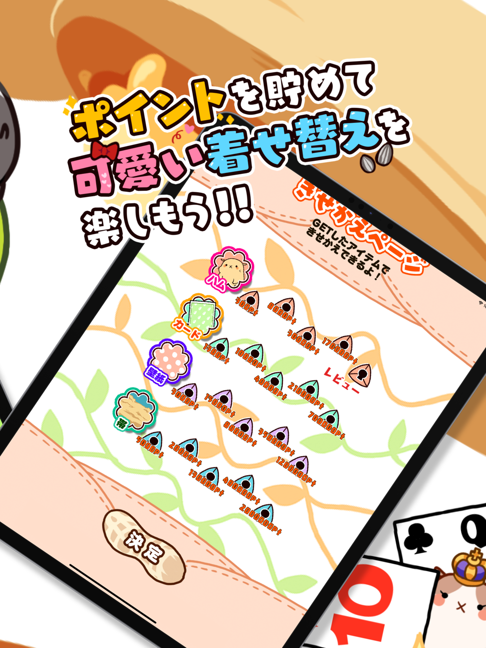 きせかえ箇所は、ハムスター、カード、壁紙、帯の4種類。