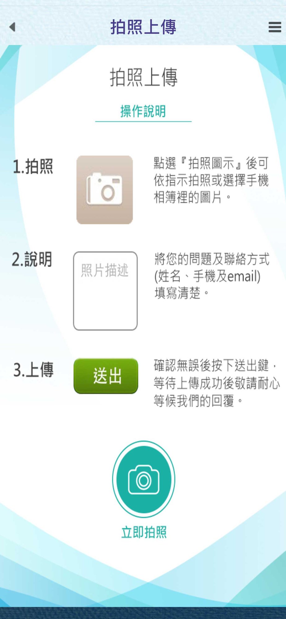 「拍照上傳」、「聯絡我們」、「最新消息」、「公司簡介」