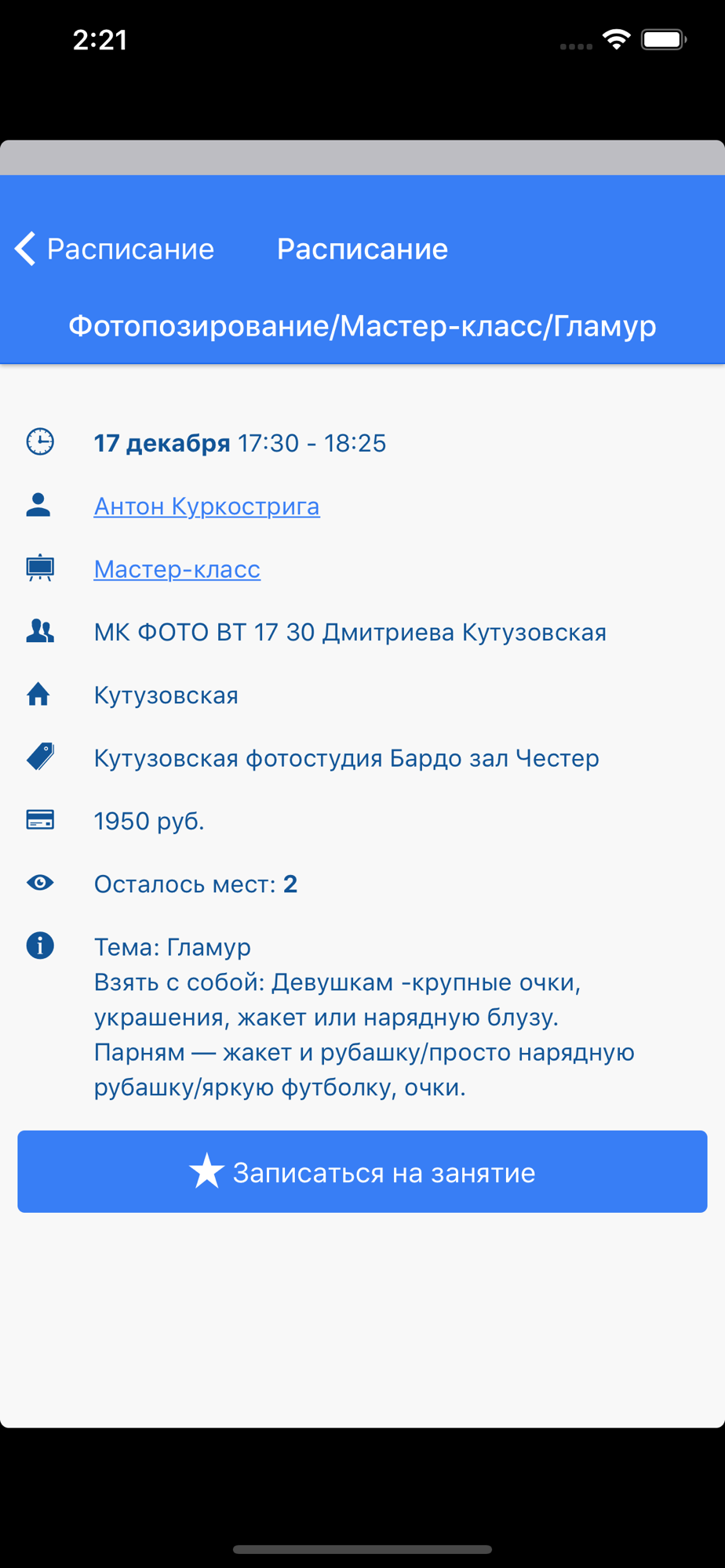 Каждый урок длится 2 часа. Открыты группы с понедельника по пятницу с 16-00 до 21-00, в выходные с 11-00 до 21-00. Мы подбираем индивидуальный график для каждого.