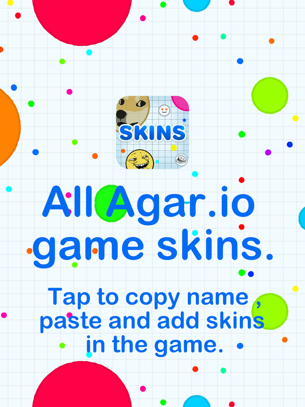 This is an UNOFFICIAL guide for Agar.io. It is developed by an independent developer, not affiliated to the game developer or publisher. The app is intended purely to assist players, and is intended to be used alongside the game. All characters, locations and images of game logos are the property of their respective owners, and usage in this app falls within guidelines of "fair use". We make no claim to and do not have any rights to any of the foregoing.