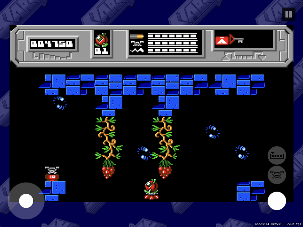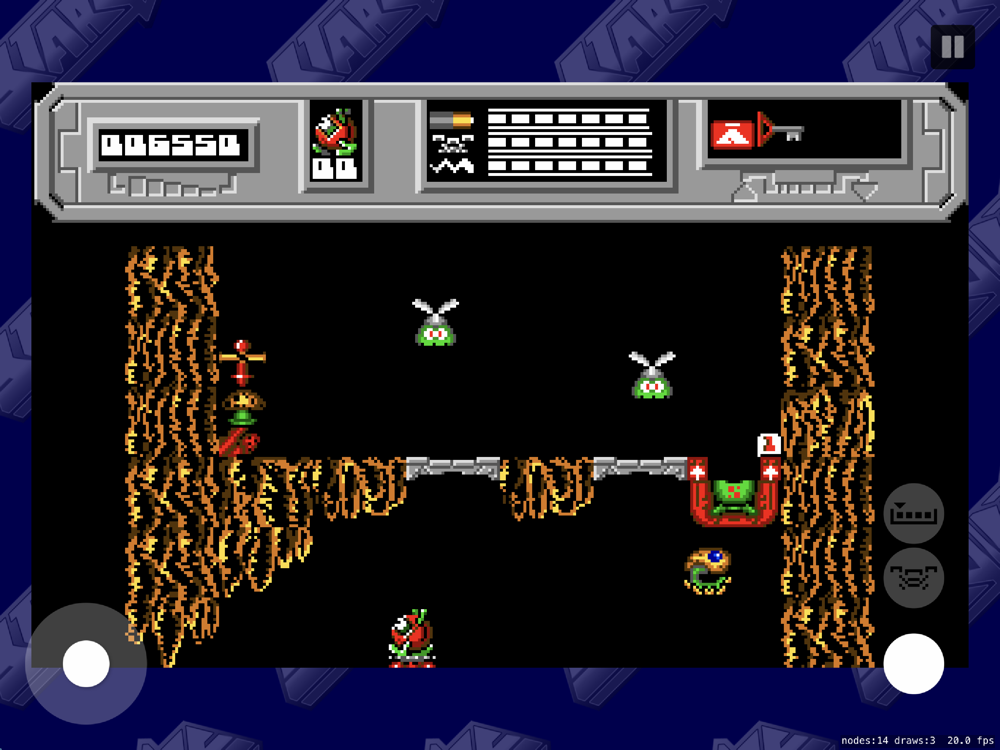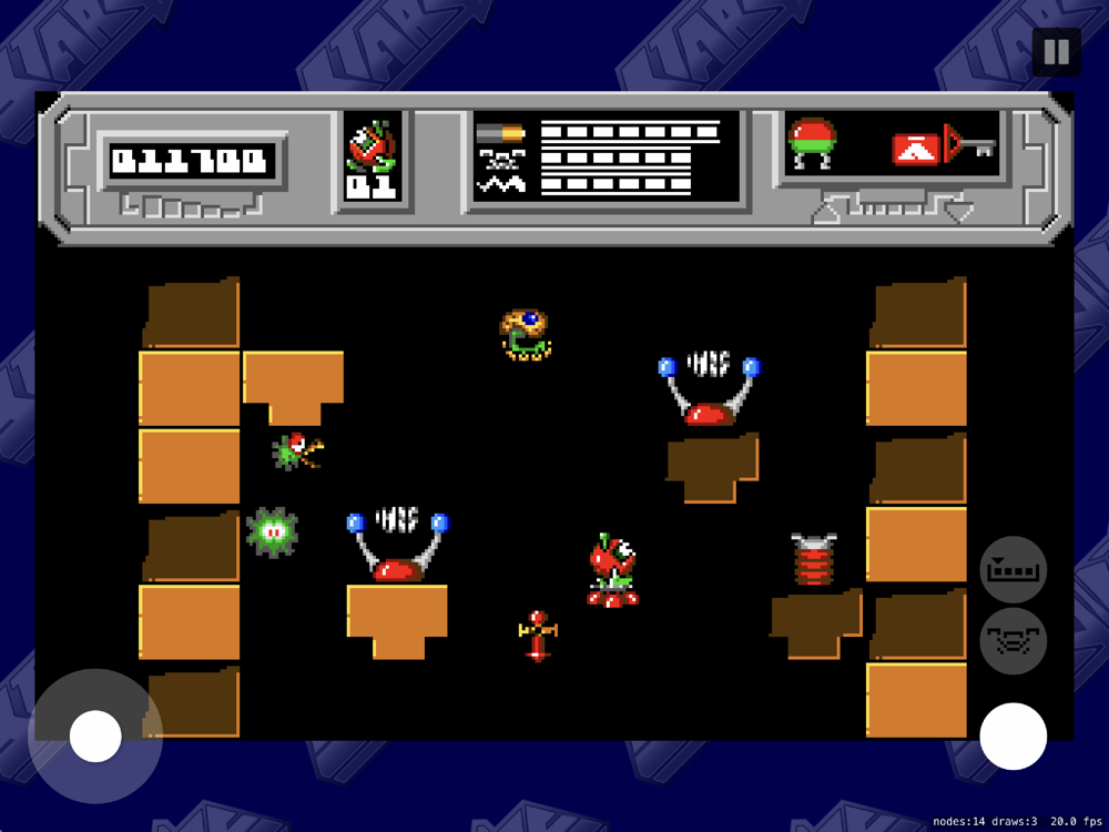 BLOB is able to carry up to four items at once, using a FIFO arrangement. Some of the items encountered will be useful to repair the core, while others will need to be exchanged using a Cheops Pyramid for something more useful. There is also an Access card, which can fill in for any of the numbered chips needed to get through some doors, and for using the aforementioned Pyramid.