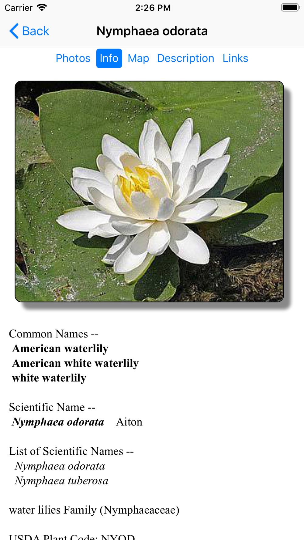 This App, which operates without an internet connection, helps find and identify plants. When you give the App information about a plant, such as its location, flower color and the time of year, the App will quickly show you which plants match your selections.