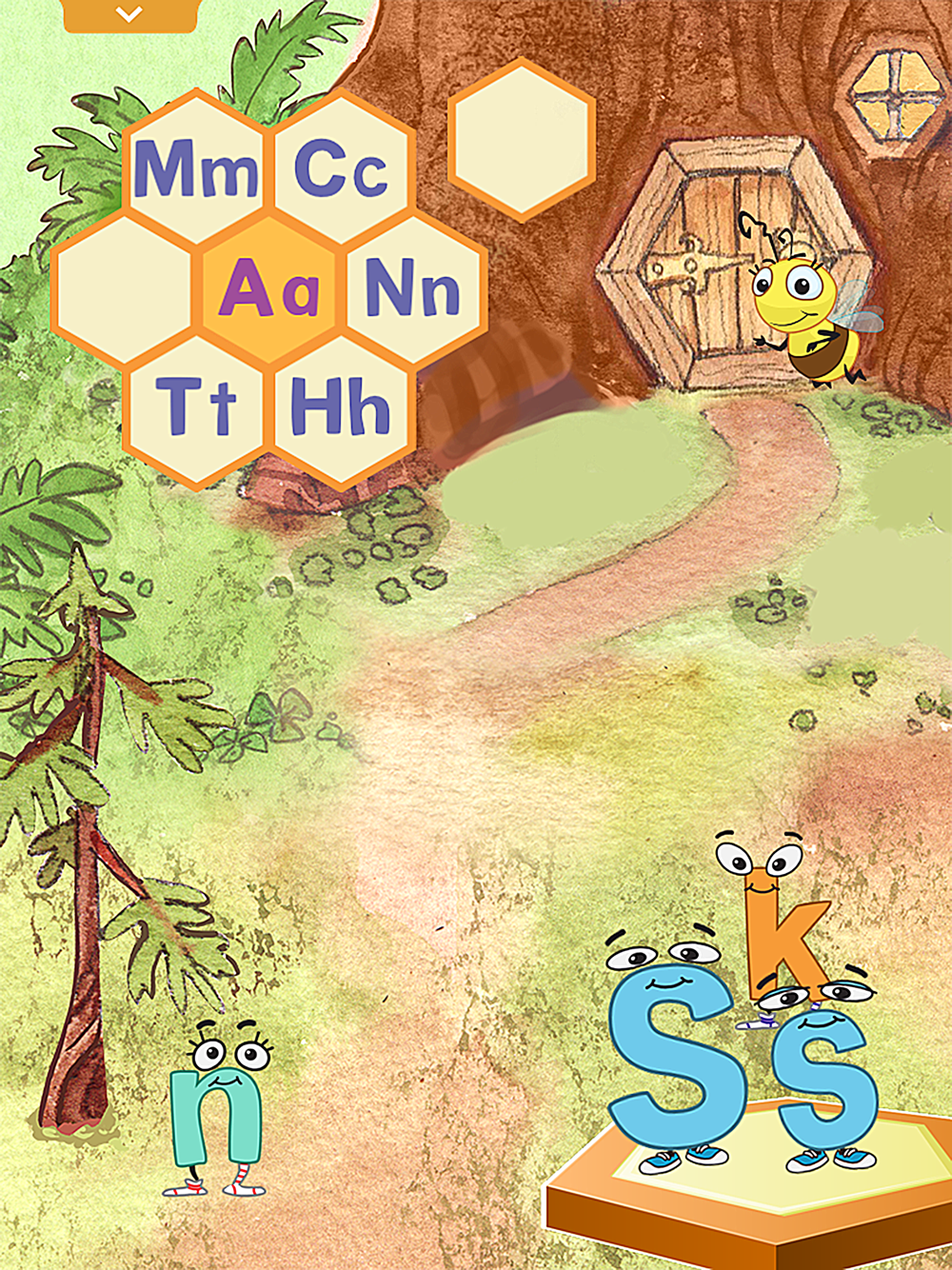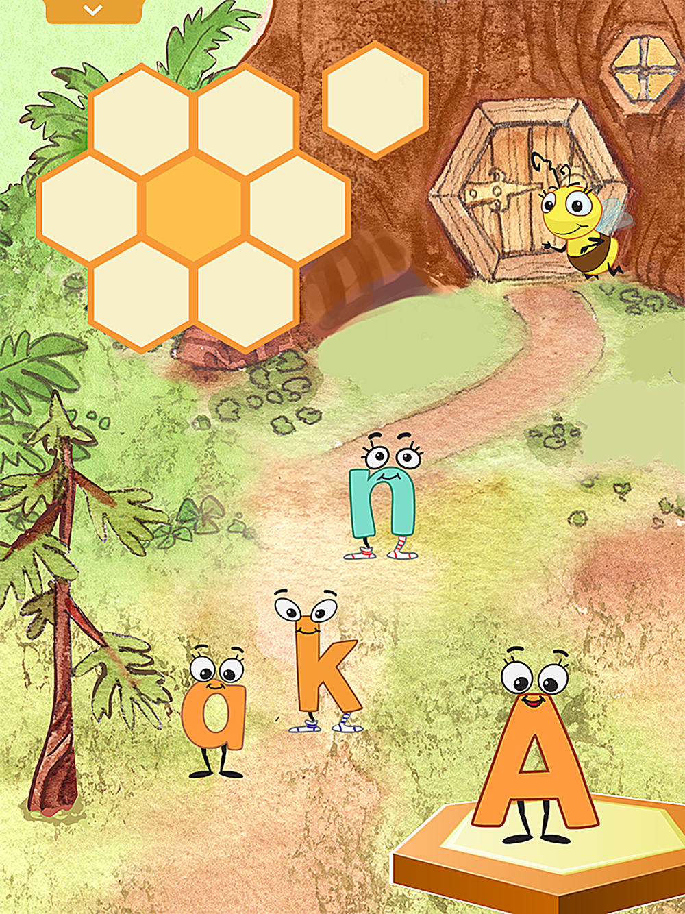 In Reader Bee’s Match Big and Little Letters Game, children match capital and lower case letters while Wizding letter people play tag. Children focus on on big letter, and choose one of 3 little letters to match it. The letters come in “daisy sets” of 7 or 8 letters to keep the conceptual load down. Clues that come up during play help children match capital and lower case letters easily. The app assesses children’s accuracy while they play and awards one of five ribbons for each daisy letter set, then brings children to play until they are fluent with all the daisy sets of letters. Up to 5 children can log in using their name and picture (if they choose). It’s a good idea to have children work with upper and lower case letters before they match these. This app is a part of the prize-winning Reader Bee Series of apps that starts with Reader Bee and the Story Tree, Parents’ Choice Gold Award Winner.