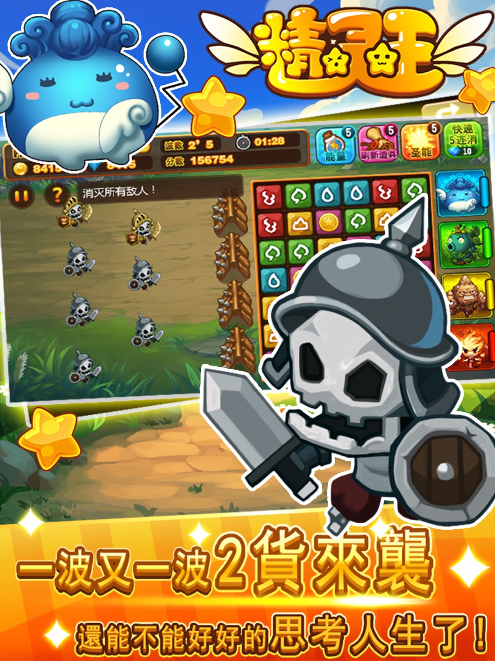 2016最強蹲馬桶神器震撼來襲!《精靈王》是一款全新塔防類消除冒險遊戲,它與傳統的三消消除遊戲截然不同,即時制消除遊戲,消得痛快!在遊戲中玩家扮演一名需要成爲精靈王的召喚者踏上精靈大陸冒險旅程,通過消除方塊擊退各路妖魔鬼怪。一波又一波2貨怪物來襲,還能不能好好的思考人生了?冒險過程中會遇到各種各樣的精靈小夥伴,每種精靈賦予的技能都是不一樣的,介麽牛X的技能,你Hold住了嗎?除此之外還有很多其它不同遊戲玩法可供玩家挑戰,黃金礦山,黑暗洞穴,格鬥場,挑戰Boss等等讓玩家愛不釋手!Duang,Duang,Duang···We are 玩木累!快來體驗吧!