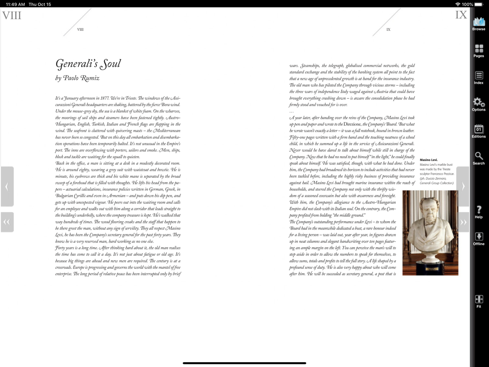 The Age of the Lion app is meant to provide readers with the contents of a book published by Assicurazioni Generali that tells the nearly two-hundred year-old story of the Company. The Age of the Lion is an incredible story that unfolds over a span of three centuries recounting the adventure of one of the world’s largest insurance companies. It is a story with numerous tales and prominent individuals that goes hand in hand with history, in particular the history of Europe - where Generali’s roots lie. Moreover, the story is told in simple language accompanied by a colorful iconography. The book is filled with gorgeous images, period photographs, advertising posters and comic strips.