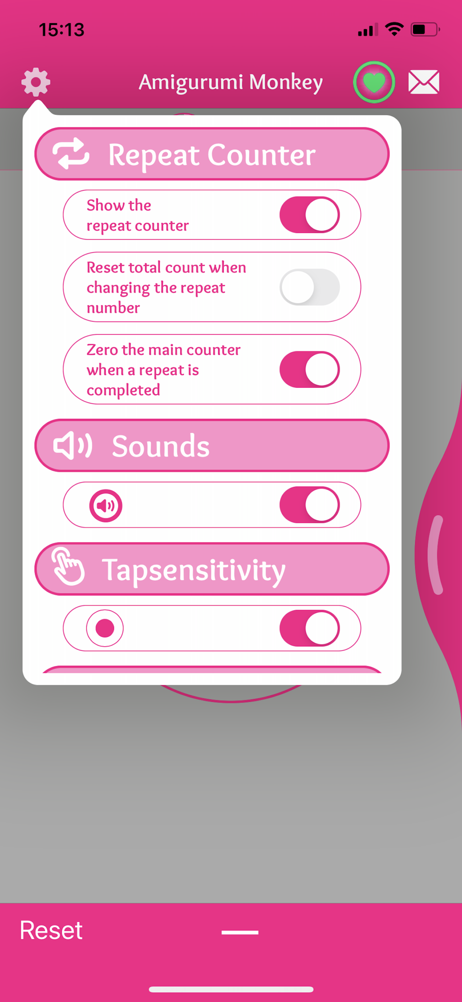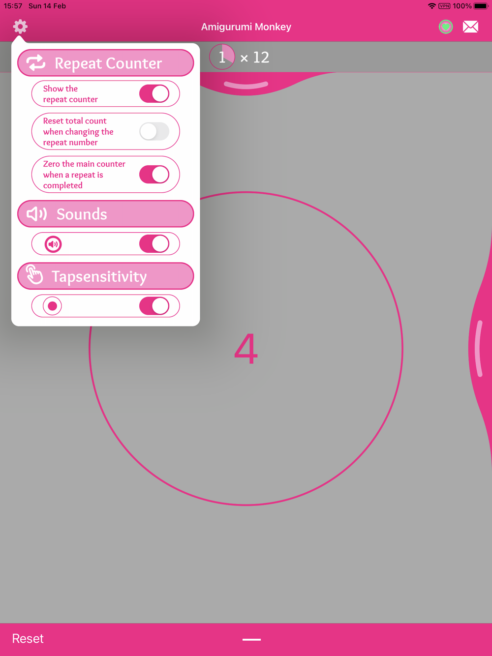 Simply tap almost anywhere on the screen and track your rows. Need to repeat the same count a number of times? This app let's you do exactly that!