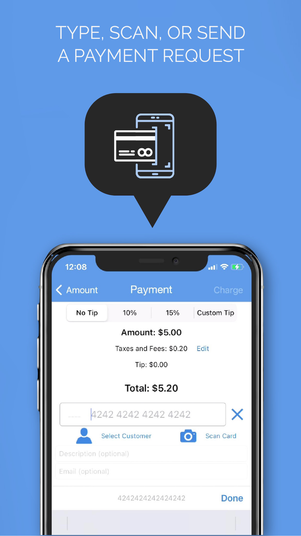 Easily scan credit cards from your phone, type in card info or get an optional card swiper.