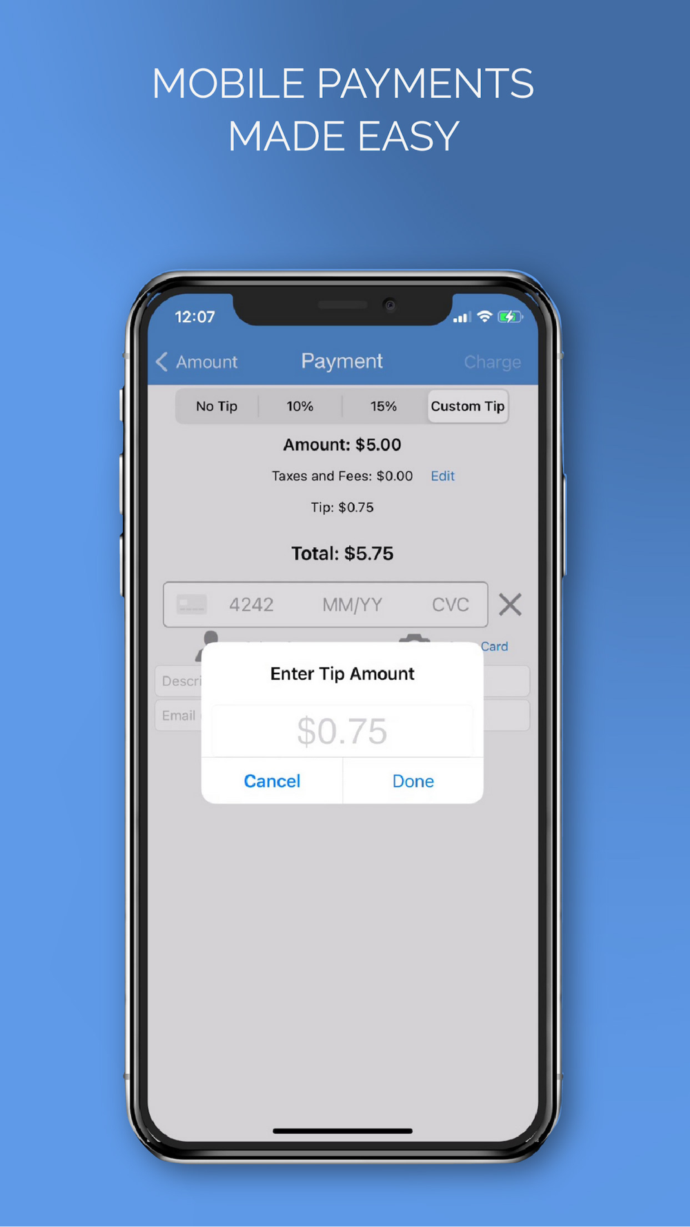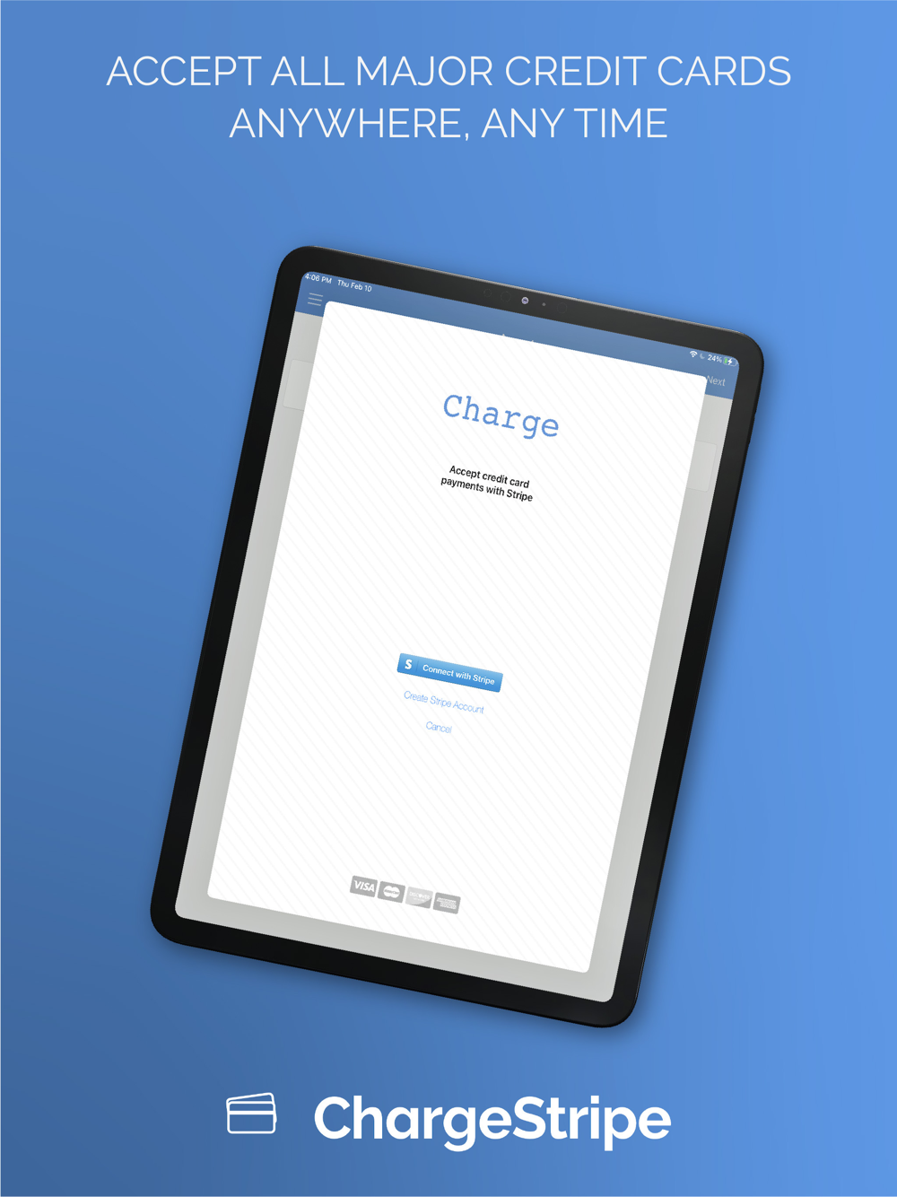 ChargeStripe allows you to accept credit card payments anywhere you go.