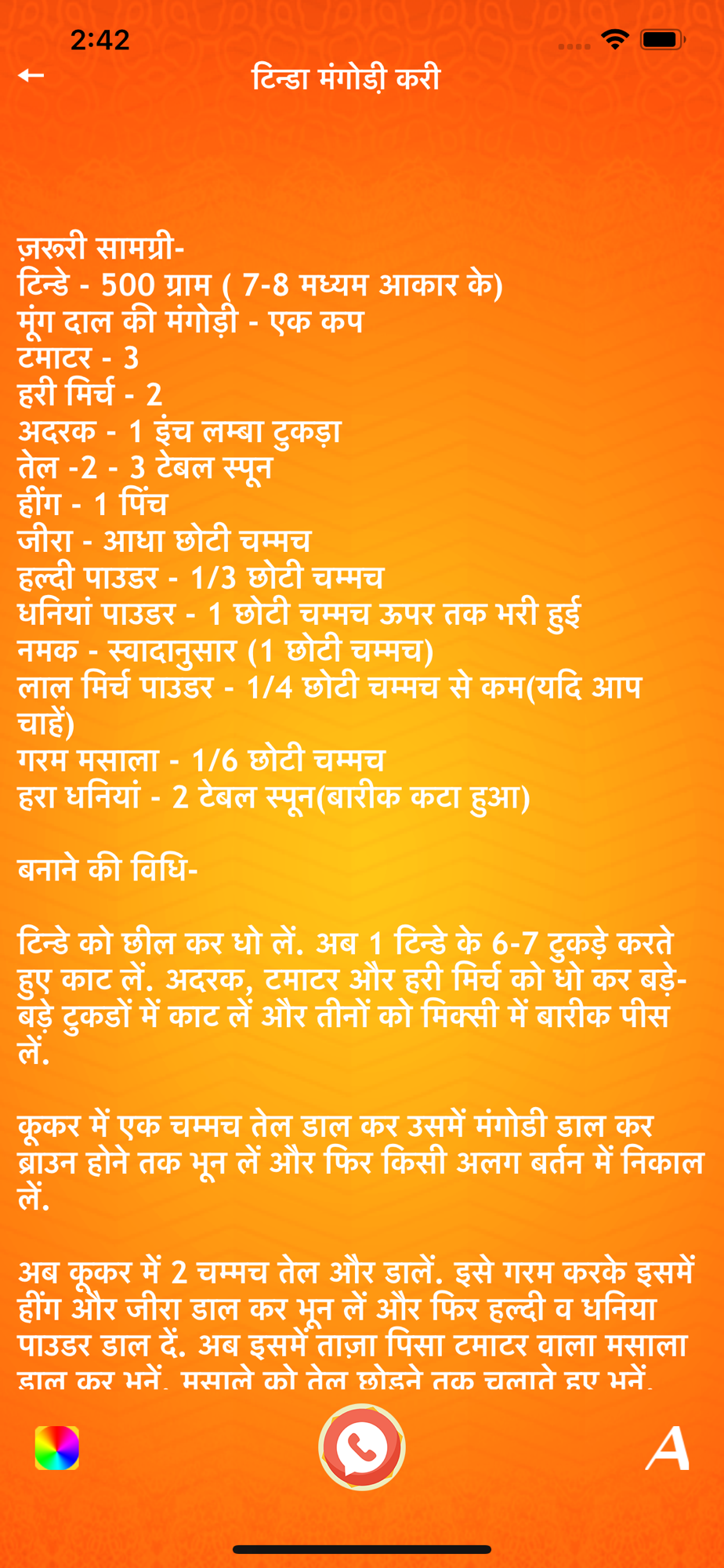 Hindi Recipes application is provided in Hindi language for those people who are not able to read in English.