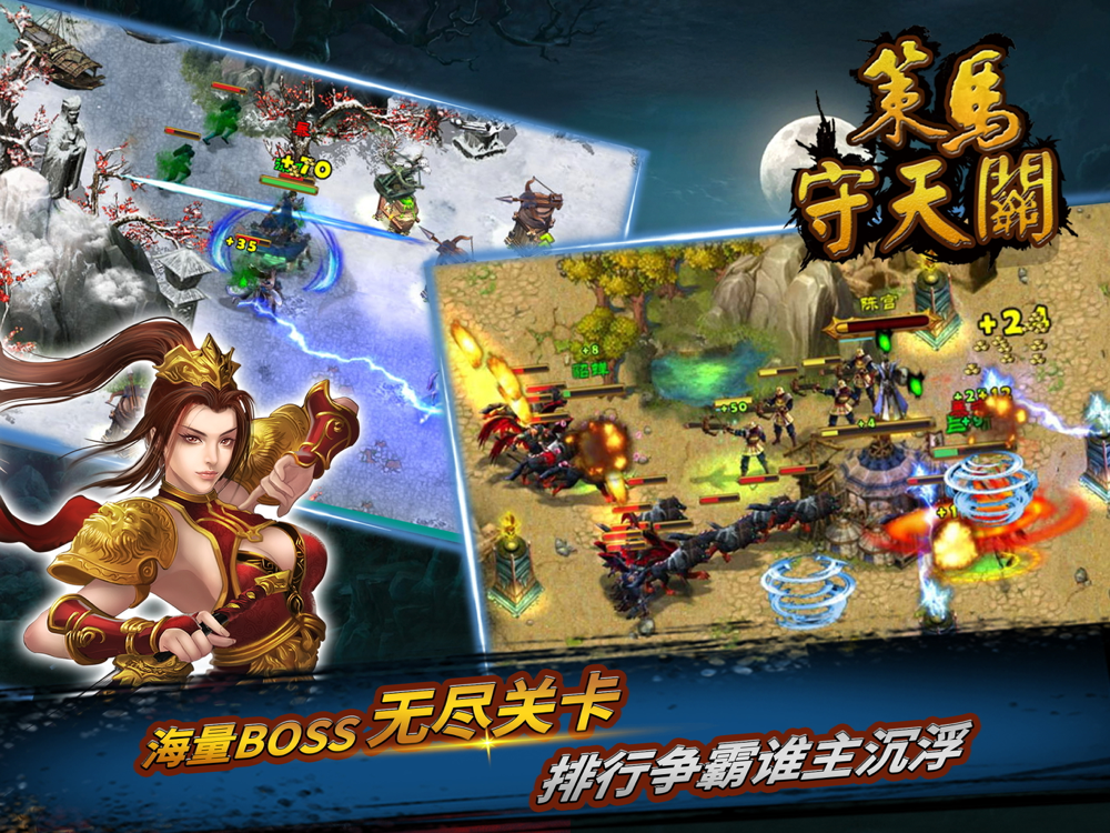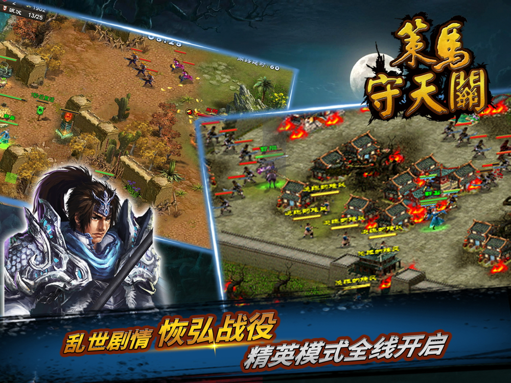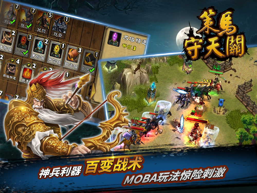 三国热血硬派塔防! 地下城闯关冒险! 强力英雄微操全场,写实再现历史恢弘战役, 更有玩家1 VS 1公平对抗 : 夺塔奇兵, 手动发兵环环相克。 Xinline Games出品:策马三国系列精品,《策马守天关》挑战您的策略与操作!