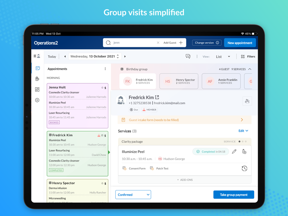 As a mobile POS, Zenoti Mobile offers seamless integration with Zenoti Payments, which means wireless, fast, and secure transactions. Zenoti Mobile works with the Zenoti desktop solution to give your guests a modern payment experience. You'll be able to: