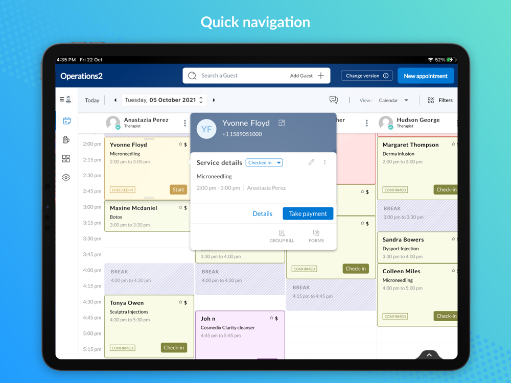 Enhance your guest experience and streamline your business operations with Zenoti Mobile. This powerful and intuitive app empowers front desk staff and service providers to directly serve their guests, from the moment they arrive, to fast and effortless check-outs through a mobile device.