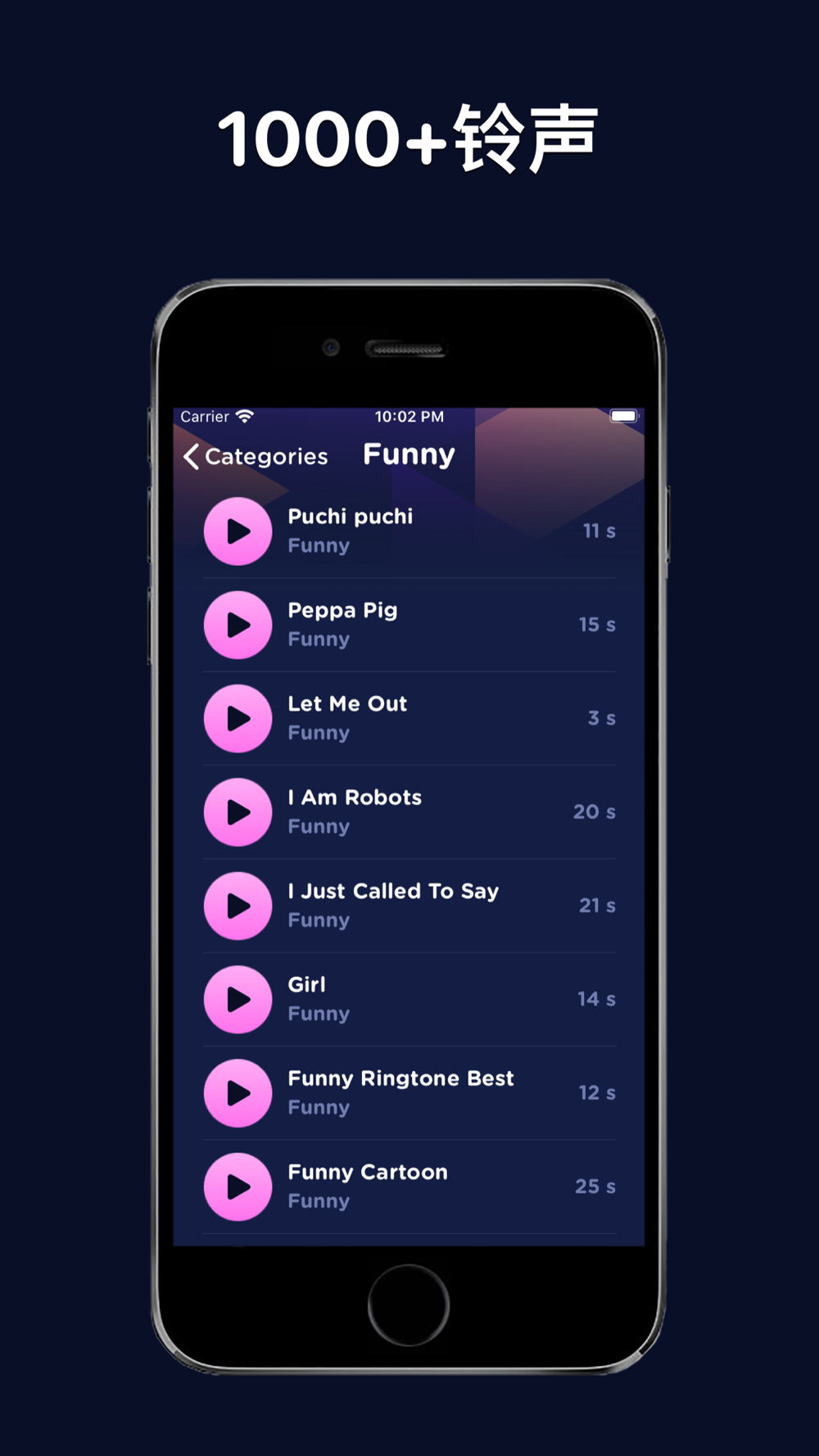 为您准备了成千上万种具有不同类别的铃声,并且每周都会更新新的铃声!