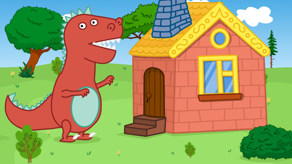 New interpretation of an old story Three Little Pigs. Interactive fairytale for all the ages! Play, have fun and develop with Hippo and her friends. Jump over the paddles, build houses and run from a big dinosaur. Learn a lot of new, unusual and interesting. More games, more fun and more happiness!