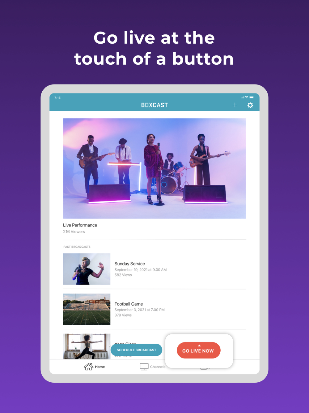 • Manage all of your broadcasts, whether they're from the Broadcaster app, BoxCaster, or BoxCaster Pro