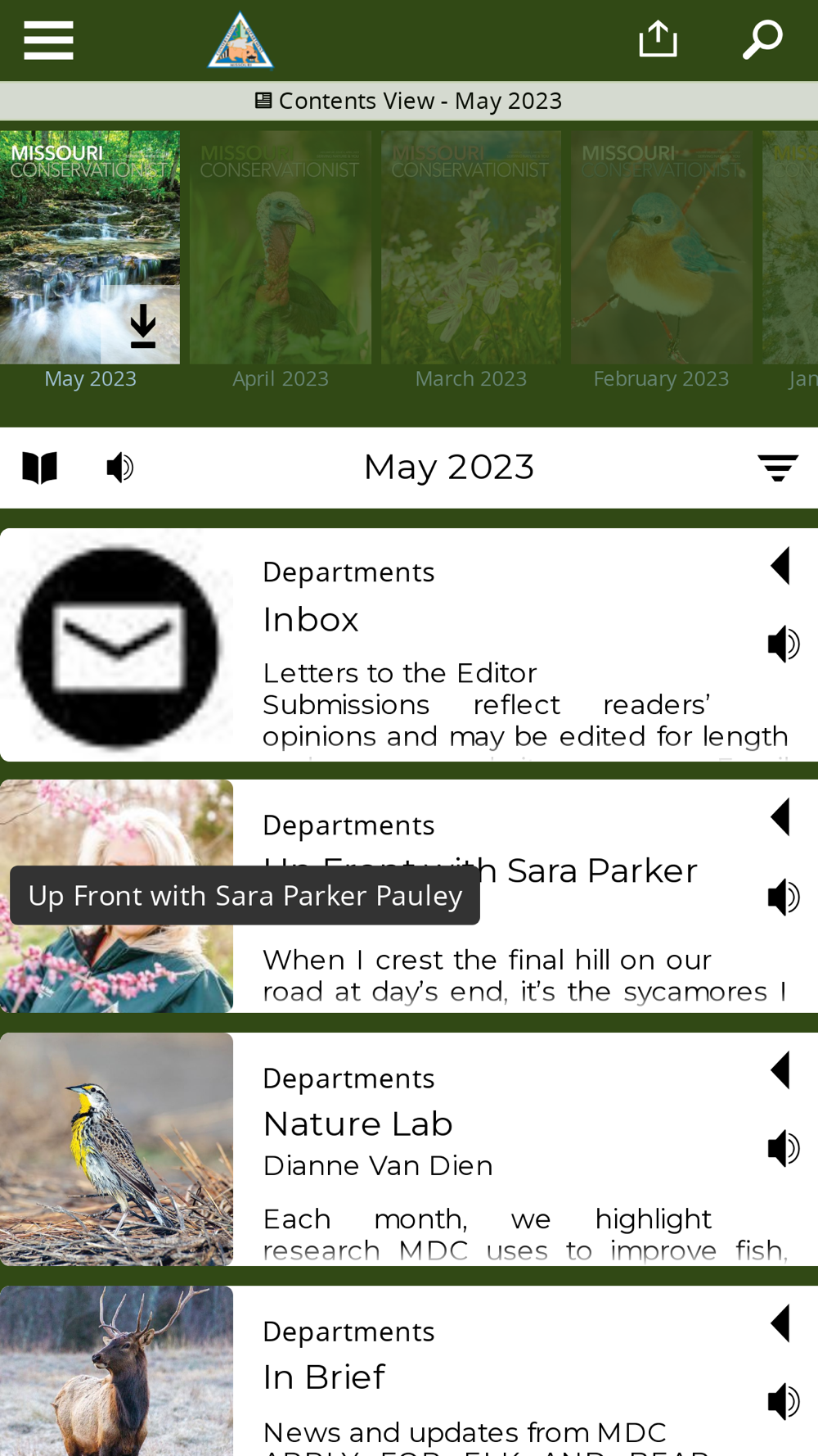 Once downloaded, the newest issue of the Missouri Conservationist will automatically appear in the app, so you can save and read it offline.