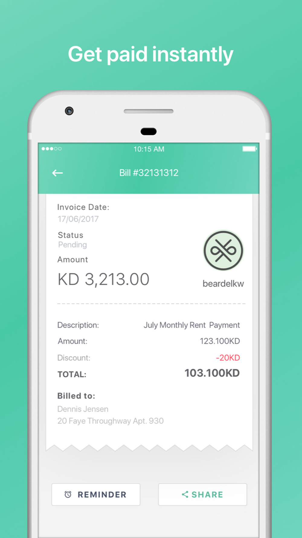 The first mobile app in Kuwait that allows landlord's and property management companies to collect monthly rent, fast and securely, through Knet.