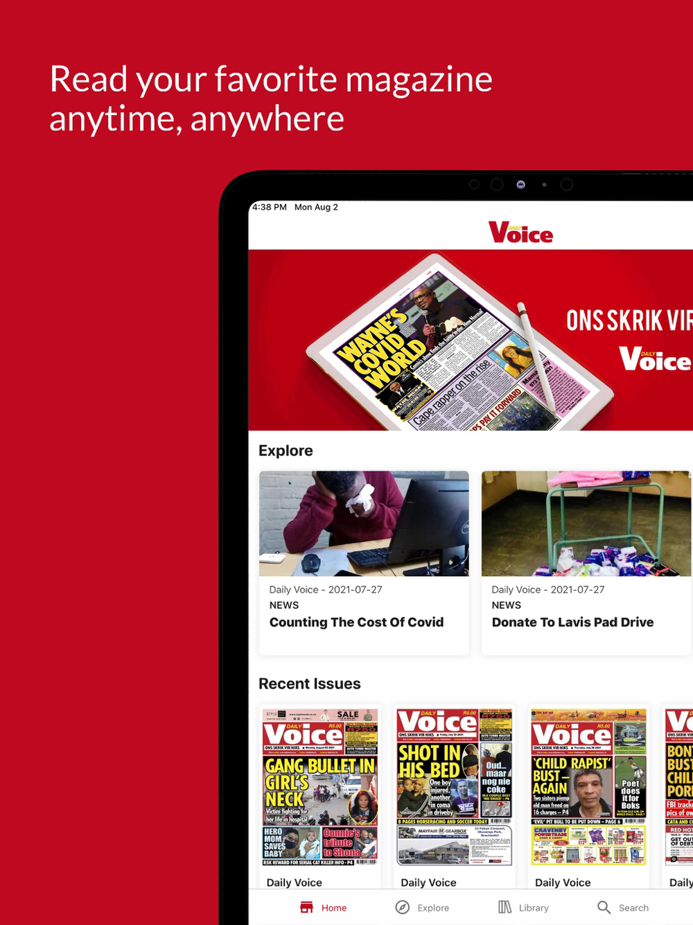 The Daily Voice is Cape Town's most read daily English newspaper. Independent Media SA's only tabloid title has a unique Cape Town cultural flavour and covers news in the local communities’ language.