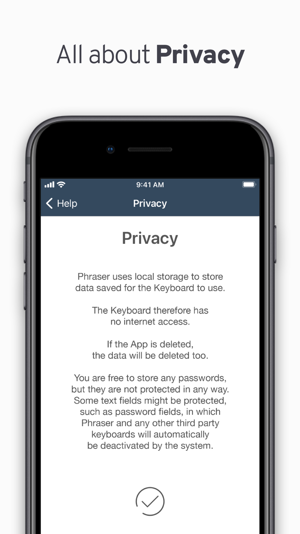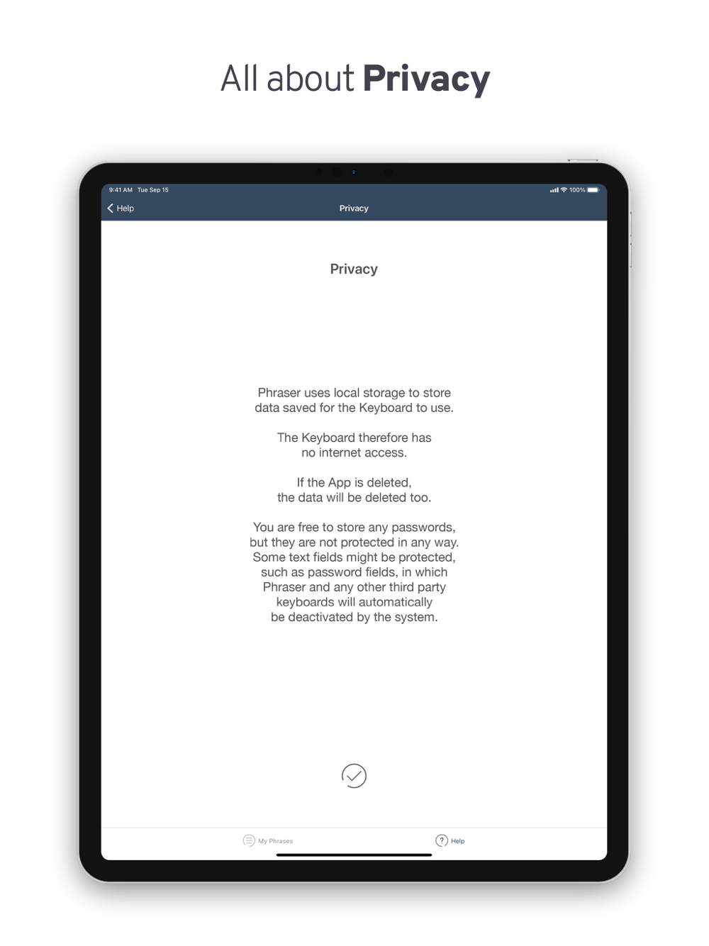 Some text fields might be protected, such as password fields, in which Phraser and any other third party keyboards will automatically be deactivated by the system.