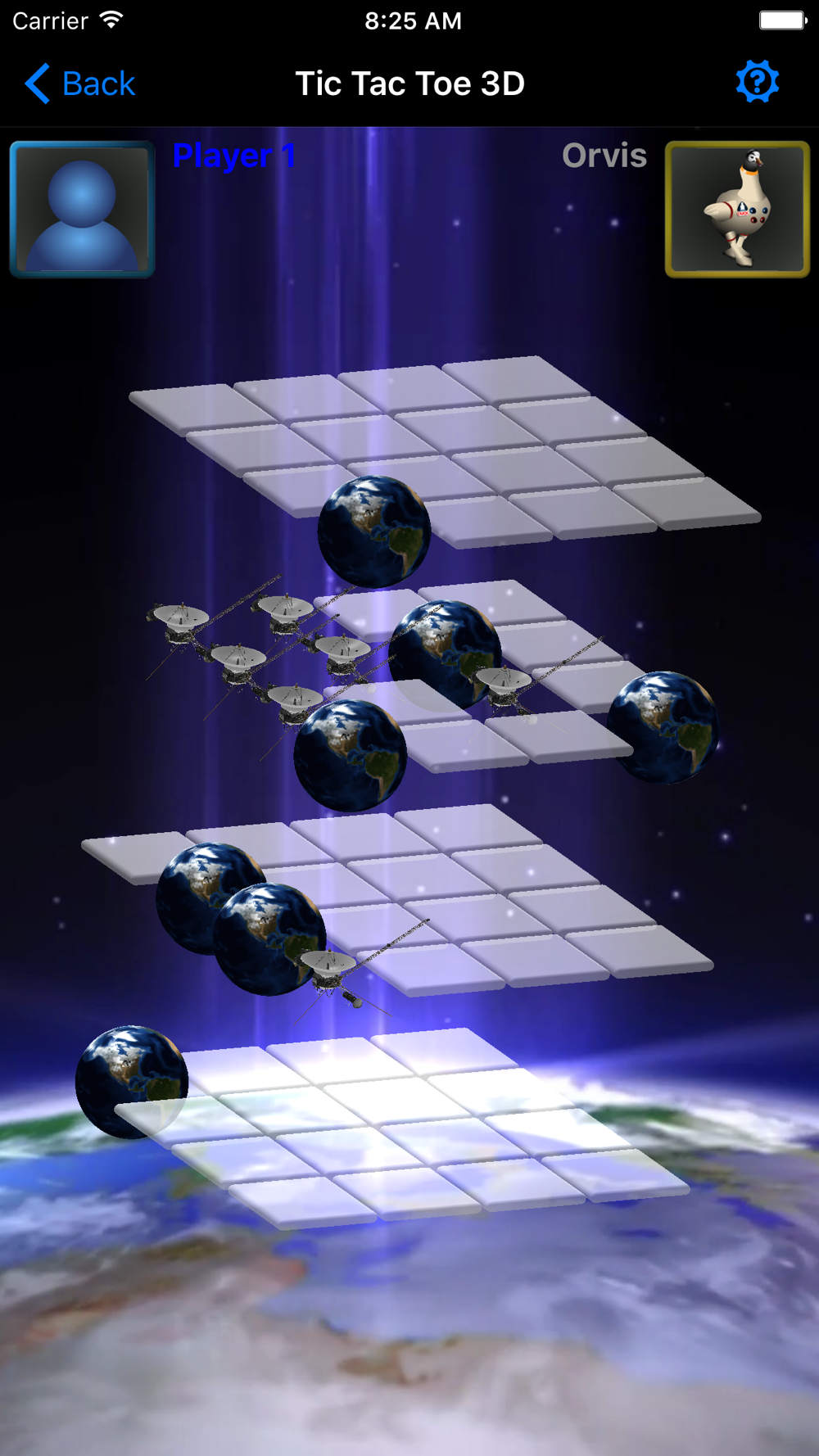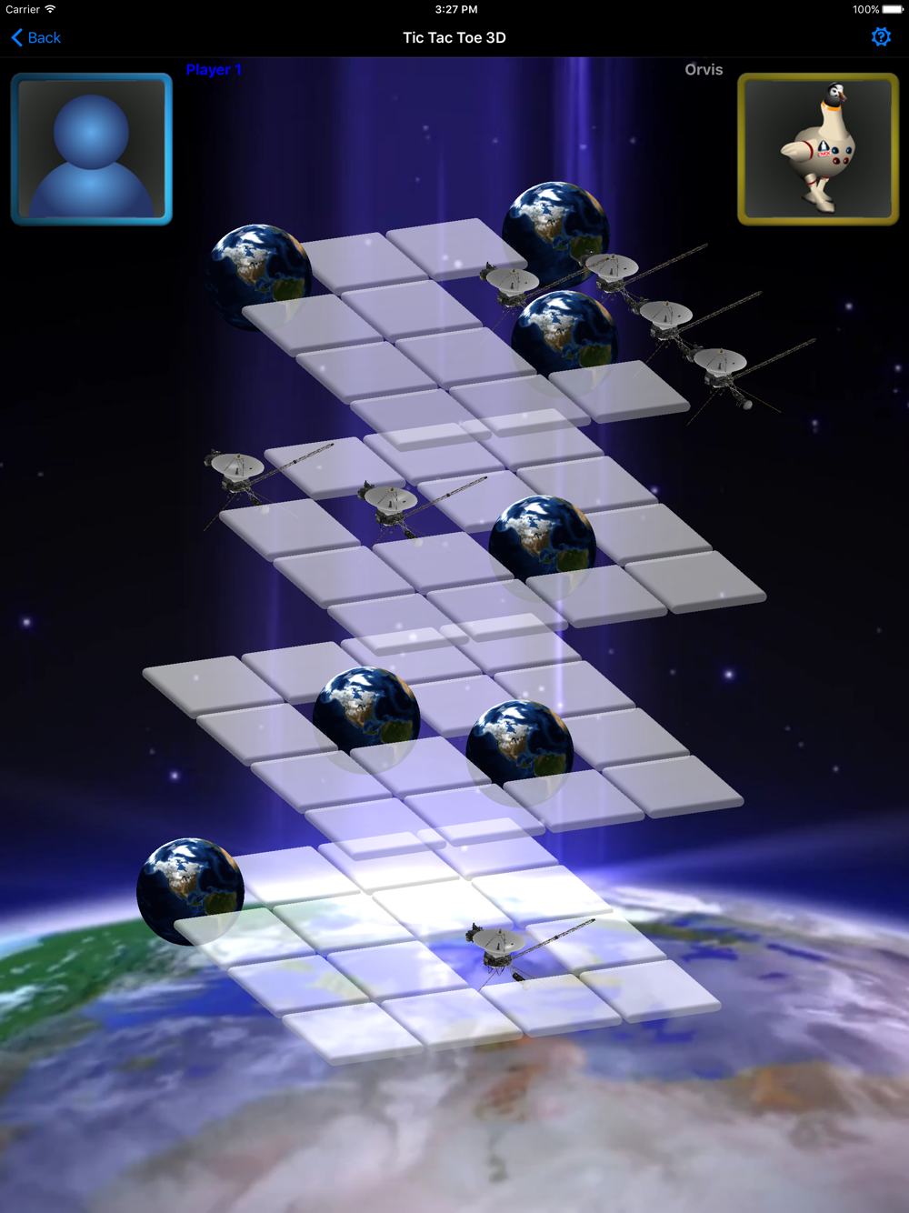 Tic Tac Toe becomes challenging again in three dimensions! Play 3D Tic Tac Toe against three difficulty levels of AI, or against a friend. Play with moving or still backgrounds with a space or ocean theme. Space slugs and starfish are ready to take you on!